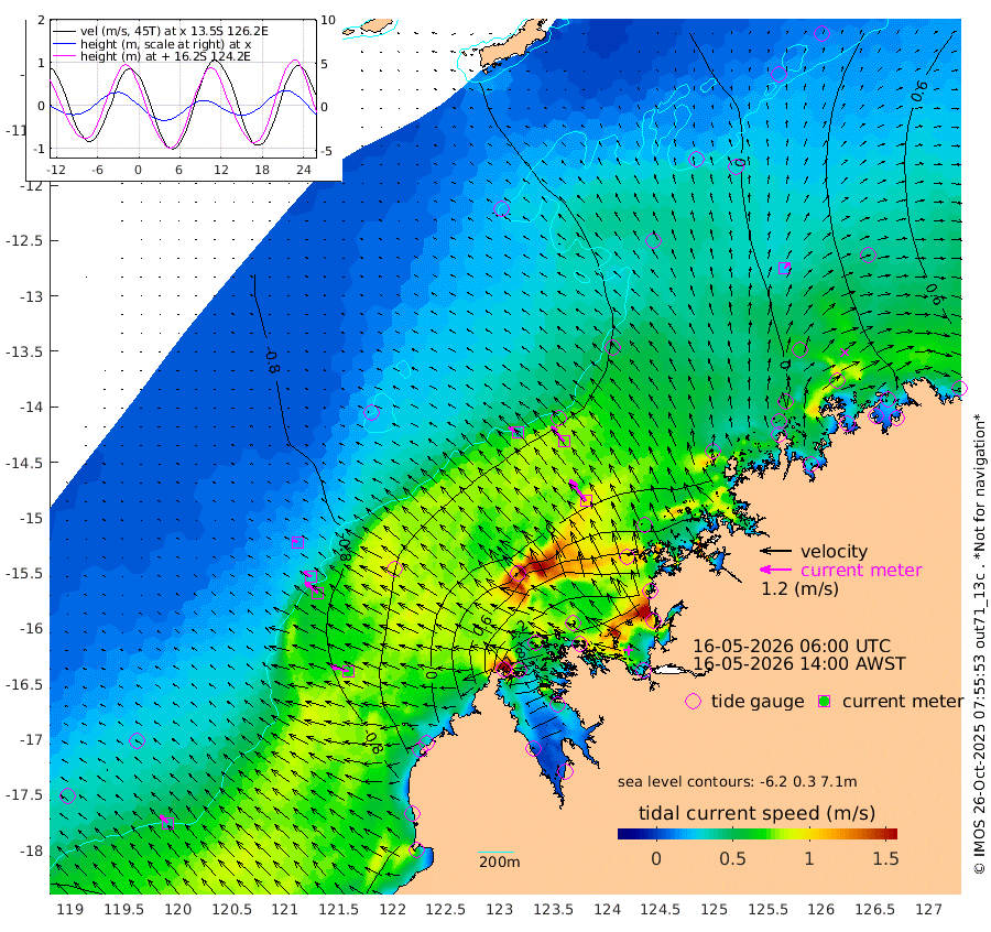 39cm/s -57T +10cm/s rms + 1cm/s 1T. NWSBRW 205m 43cm/s -46T +11cm/s rms + 6cm/s -110T. NWSROW 199m 102cm/s -37T +5cm/s rms + 2cm/s 65T. CAM050 58m 74cm/s -39T +12cm/s rms + 5cm/s 92T. CAM100 99m 17cm/s -64T +7cm/s rms + 1cm/s -85T. KIM400 396m 35cm/s -60T +9cm/s rms + 5cm/s -119T. KIM200 208m 63cm/s -52T +11cm/s rms + 5cm/s -147T. KIM100 99m 72cm/s -74T +8cm/s rms + 3cm/s -103T. KIM050 59m 26cm/s 29T +4cm/s rms + 2cm/s 23T. TIMORS88 91m 50cm Imperieuse Reef -98cm Mermaid Reef -143cm Broome -115cm Cape Baskerville -45cm Red Bluff -103cm Cape Boileau -91cm Scott Reef (WA) -54cm Ashmore Reef 84cm Karrakatta Bay 106cm Sunday Island 385cm Valentine Island 442cm Derby 321cm Port Usborne 9cm Bedford Islands 10cm Yampi Sound (Koolan Island) -26cm Macleay Island -64cm Adele Island -154cm Browse Island 82cm Shale Island 70cm Lizard Island 86cm Hall Point -45cm Degerando Island -79cm White Island -77cm Skua No. 4 Well -10cm Jabiru -106cm Maret Island -89cm Baudin Island -96cm Cape Voltaire (Krait Bay) -17cm Dillon Shoal -93cm Laminaria -64cm Port Warrender -38cm Troughton Island -90cm Cassini Island -69cm West Holothuria Reef Offshore -31cm Jar Island -83cm Lynher Bank -117cm Heywood Shoal -44cm Pee Shoal -10cm Van Cloon Shoal -40cm Carronade Island -53cm Guy Point -39cm Napier Broome Bay 11cm Lesueur Island