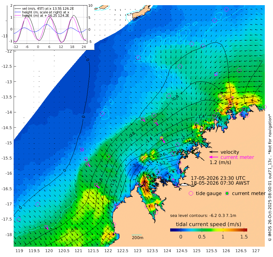 47cm/s 132T +10cm/s rms + 1cm/s 1T. NWSBRW 205m 44cm/s 144T +11cm/s rms + 6cm/s -110T. NWSROW 199m 80cm/s 145T +5cm/s rms + 2cm/s 65T. CAM050 58m 64cm/s 144T +12cm/s rms + 5cm/s 92T. CAM100 99m 12cm/s 136T +7cm/s rms + 1cm/s -85T. KIM400 396m 28cm/s 134T +9cm/s rms + 5cm/s -119T. KIM200 208m 55cm/s 142T +11cm/s rms + 5cm/s -147T. KIM100 99m 61cm/s 130T +8cm/s rms + 3cm/s -103T. KIM050 59m 28cm/s -148T +4cm/s rms + 2cm/s 23T. TIMORS88 91m -104cm Imperieuse Reef 13cm Mermaid Reef -104cm Broome -54cm Cape Baskerville -150cm Red Bluff -58cm Cape Boileau 14cm Scott Reef (WA) -22cm Ashmore Reef -272cm Karrakatta Bay -259cm Sunday Island -362cm Valentine Island -339cm Derby -347cm Port Usborne -239cm Bedford Islands -269cm Yampi Sound (Koolan Island) -275cm Macleay Island -126cm Adele Island 49cm Browse Island -387cm Shale Island -357cm Lizard Island -297cm Hall Point -185cm Degerando Island -131cm White Island -14cm Skua No. 4 Well -34cm Jabiru -72cm Maret Island -59cm Baudin Island -49cm Cape Voltaire (Krait Bay) -18cm Dillon Shoal 52cm Laminaria -72cm Port Warrender -7cm Troughton Island -40cm Cassini Island -2cm West Holothuria Reef Offshore -13cm Jar Island -39cm Lynher Bank -17cm Heywood Shoal -11cm Pee Shoal 17cm Van Cloon Shoal 58cm Carronade Island 70cm Guy Point 59cm Napier Broome Bay 132cm Lesueur Island