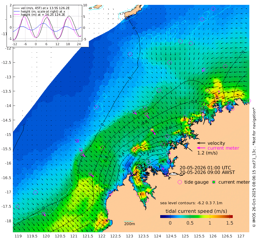 46cm/s 130T +10cm/s rms + 1cm/s 1T. NWSBRW 205m 44cm/s 143T +11cm/s rms + 6cm/s -110T. NWSROW 199m 83cm/s 144T +5cm/s rms + 2cm/s 65T. CAM050 58m 66cm/s 142T +12cm/s rms + 5cm/s 92T. CAM100 99m 12cm/s 132T +7cm/s rms + 1cm/s -85T. KIM400 396m 28cm/s 132T +9cm/s rms + 5cm/s -119T. KIM200 208m 54cm/s 140T +11cm/s rms + 5cm/s -147T. KIM100 99m 61cm/s 125T +8cm/s rms + 3cm/s -103T. KIM050 59m 30cm/s -151T +4cm/s rms + 2cm/s 23T. TIMORS88 91m -88cm Imperieuse Reef 32cm Mermaid Reef -47cm Broome -13cm Cape Baskerville -83cm Red Bluff -10cm Cape Boileau 30cm Scott Reef (WA) 2cm Ashmore Reef -226cm Karrakatta Bay -219cm Sunday Island -375cm Valentine Island -364cm Derby -354cm Port Usborne -191cm Bedford Islands -209cm Yampi Sound (Koolan Island) -219cm Macleay Island -81cm Adele Island 71cm Browse Island -325cm Shale Island -302cm Lizard Island -217cm Hall Point -129cm Degerando Island -79cm White Island 7cm Skua No. 4 Well -13cm Jabiru -26cm Maret Island -14cm Baudin Island -7cm Cape Voltaire (Krait Bay) 0cm Dillon Shoal 60cm Laminaria -24cm Port Warrender 17cm Troughton Island 2cm Cassini Island 29cm West Holothuria Reef Offshore 16cm Jar Island -12cm Lynher Bank 20cm Heywood Shoal 9cm Pee Shoal 38cm Van Cloon Shoal 79cm Carronade Island 88cm Guy Point 85cm Napier Broome Bay 132cm Lesueur Island