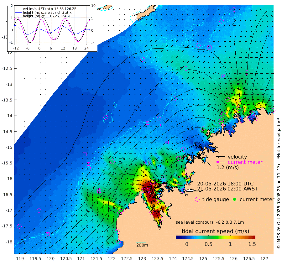 19cm/s -30T +10cm/s rms + 1cm/s 1T. NWSBRW 205m 19cm/s -13T +11cm/s rms + 6cm/s -110T. NWSROW 199m 11cm/s -7T +5cm/s rms + 2cm/s 65T. CAM050 58m 13cm/s 7T +12cm/s rms + 5cm/s 92T. CAM100 99m 6cm/s 37T +7cm/s rms + 1cm/s -85T. KIM400 396m 11cm/s 22T +9cm/s rms + 5cm/s -119T. KIM200 208m 18cm/s 13T +11cm/s rms + 5cm/s -147T. KIM100 99m 34cm/s 12T +8cm/s rms + 3cm/s -103T. KIM050 59m 20cm/s 55T +4cm/s rms + 2cm/s 23T. TIMORS88 91m 100cm Imperieuse Reef 92cm Mermaid Reef 272cm Broome 184cm Cape Baskerville 237cm Red Bluff 168cm Cape Boileau 79cm Scott Reef (WA) 97cm Ashmore Reef 277cm Karrakatta Bay 253cm Sunday Island 128cm Valentine Island 44cm Derby 166cm Port Usborne 313cm Bedford Islands 351cm Yampi Sound (Koolan Island) 368cm Macleay Island 226cm Adele Island 78cm Browse Island 436cm Shale Island 418cm Lizard Island 364cm Hall Point 290cm Degerando Island 260cm White Island 99cm Skua No. 4 Well 78cm Jabiru 204cm Maret Island 179cm Baudin Island 167cm Cape Voltaire (Krait Bay) 50cm Dillon Shoal 48cm Laminaria 176cm Port Warrender 71cm Troughton Island 146cm Cassini Island 87cm West Holothuria Reef Offshore 72cm Jar Island 150cm Lynher Bank 141cm Heywood Shoal 71cm Pee Shoal 13cm Van Cloon Shoal -5cm Carronade Island -7cm Guy Point -13cm Napier Broome Bay -123cm Lesueur Island