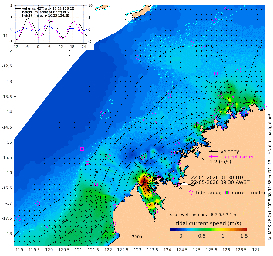 31cm/s 136T +10cm/s rms + 1cm/s 1T. NWSBRW 205m 24cm/s 150T +11cm/s rms + 6cm/s -110T. NWSROW 199m 36cm/s 149T +5cm/s rms + 2cm/s 65T. CAM050 58m 32cm/s 150T +12cm/s rms + 5cm/s 92T. CAM100 99m 6cm/s 157T +7cm/s rms + 1cm/s -85T. KIM400 396m 13cm/s 155T +9cm/s rms + 5cm/s -119T. KIM200 208m 27cm/s 158T +11cm/s rms + 5cm/s -147T. KIM100 99m 34cm/s 150T +8cm/s rms + 3cm/s -103T. KIM050 59m 21cm/s -163T +4cm/s rms + 2cm/s 23T. TIMORS88 91m -86cm Imperieuse Reef -31cm Mermaid Reef -148cm Broome -91cm Cape Baskerville -119cm Red Bluff -87cm Cape Boileau -29cm Scott Reef (WA) -43cm Ashmore Reef -214cm Karrakatta Bay -201cm Sunday Island -223cm Valentine Island -178cm Derby -232cm Port Usborne -218cm Bedford Islands -250cm Yampi Sound (Koolan Island) -273cm Macleay Island -139cm Adele Island -21cm Browse Island -339cm Shale Island -332cm Lizard Island -242cm Hall Point -191cm Degerando Island -160cm White Island -47cm Skua No. 4 Well -46cm Jabiru -107cm Maret Island -88cm Baudin Island -90cm Cape Voltaire (Krait Bay) -29cm Dillon Shoal 7cm Laminaria -105cm Port Warrender -40cm Troughton Island -71cm Cassini Island -34cm West Holothuria Reef Offshore -38cm Jar Island -78cm Lynher Bank -62cm Heywood Shoal -31cm Pee Shoal 5cm Van Cloon Shoal 20cm Carronade Island 21cm Guy Point 25cm Napier Broome Bay 92cm Lesueur Island