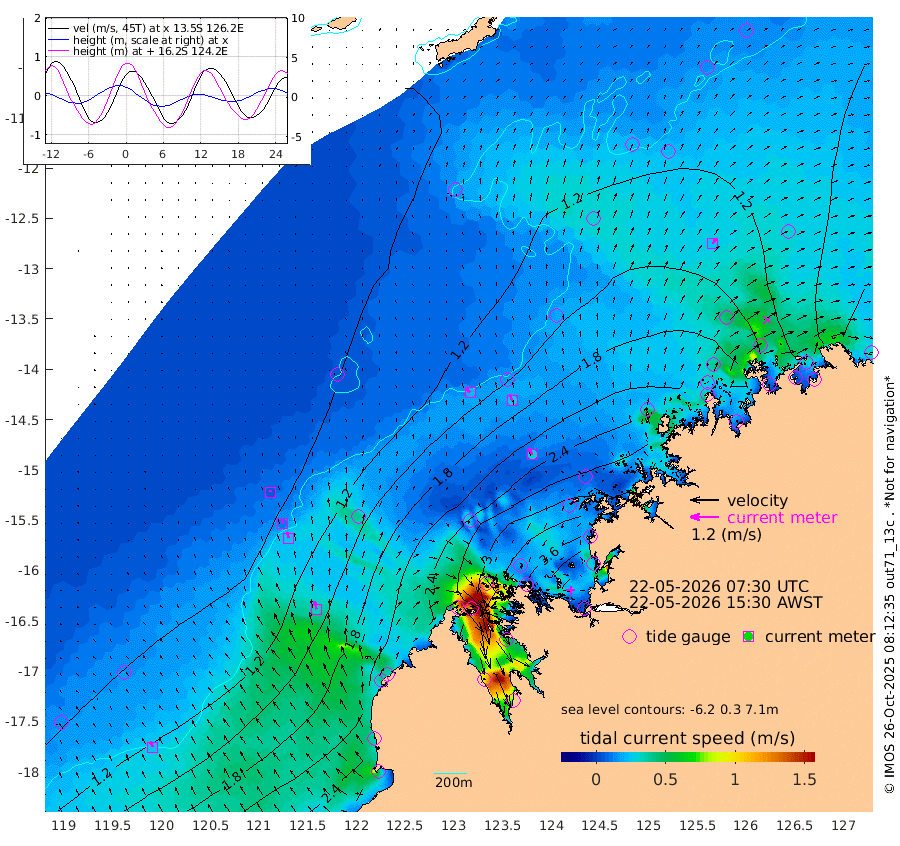 23cm/s -39T +10cm/s rms + 1cm/s 1T. NWSBRW 205m 25cm/s -25T +11cm/s rms + 6cm/s -110T. NWSROW 199m 32cm/s -27T +5cm/s rms + 2cm/s 65T. CAM050 58m 28cm/s -20T +12cm/s rms + 5cm/s 92T. CAM100 99m 7cm/s -14T +7cm/s rms + 1cm/s -85T. KIM400 396m 12cm/s -21T +9cm/s rms + 5cm/s -119T. KIM200 208m 25cm/s -20T +11cm/s rms + 5cm/s -147T. KIM100 99m 35cm/s -14T +8cm/s rms + 3cm/s -103T. KIM050 59m 25cm/s 29T +4cm/s rms + 2cm/s 23T. TIMORS88 91m 133cm Imperieuse Reef 81cm Mermaid Reef 209cm Broome 145cm Cape Baskerville 173cm Red Bluff 163cm Cape Boileau 81cm Scott Reef (WA) 104cm Ashmore Reef 263cm Karrakatta Bay 262cm Sunday Island 237cm Valentine Island 198cm Derby 253cm Port Usborne 261cm Bedford Islands 310cm Yampi Sound (Koolan Island) 324cm Macleay Island 196cm Adele Island 62cm Browse Island 392cm Shale Island 410cm Lizard Island 302cm Hall Point 255cm Degerando Island 227cm White Island 111cm Skua No. 4 Well 123cm Jabiru 175cm Maret Island 155cm Baudin Island 169cm Cape Voltaire (Krait Bay) 103cm Dillon Shoal 53cm Laminaria 195cm Port Warrender 132cm Troughton Island 149cm Cassini Island 116cm West Holothuria Reef Offshore 127cm Jar Island 137cm Lynher Bank 142cm Heywood Shoal 103cm Pee Shoal 88cm Van Cloon Shoal 82cm Carronade Island 85cm Guy Point 94cm Napier Broome Bay 25cm Lesueur Island