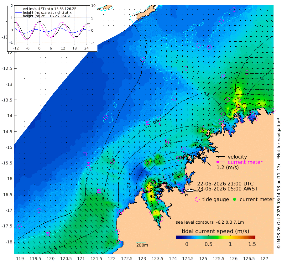 19cm/s -49T +10cm/s rms + 1cm/s 1T. NWSBRW 205m 26cm/s -33T +11cm/s rms + 6cm/s -110T. NWSROW 199m 44cm/s -23T +5cm/s rms + 2cm/s 65T. CAM050 58m 33cm/s -23T +12cm/s rms + 5cm/s 92T. CAM100 99m 5cm/s -24T +7cm/s rms + 1cm/s -85T. KIM400 396m 15cm/s -34T +9cm/s rms + 5cm/s -119T. KIM200 208m 29cm/s -31T +11cm/s rms + 5cm/s -147T. KIM100 99m 31cm/s -38T +8cm/s rms + 3cm/s -103T. KIM050 59m 28cm/s 53T +4cm/s rms + 2cm/s 23T. TIMORS88 91m 74cm Imperieuse Reef 18cm Mermaid Reef 65cm Broome 39cm Cape Baskerville 68cm Red Bluff 25cm Cape Boileau 19cm Scott Reef (WA) 38cm Ashmore Reef 167cm Karrakatta Bay 176cm Sunday Island 263cm Valentine Island 248cm Derby 255cm Port Usborne 166cm Bedford Islands 167cm Yampi Sound (Koolan Island) 192cm Macleay Island 96cm Adele Island -22cm Browse Island 240cm Shale Island 238cm Lizard Island 116cm Hall Point 112cm Degerando Island 82cm White Island 38cm Skua No. 4 Well 28cm Jabiru 55cm Maret Island 39cm Baudin Island 34cm Cape Voltaire (Krait Bay) 29cm Dillon Shoal 22cm Laminaria 37cm Port Warrender 21cm Troughton Island 31cm Cassini Island 14cm West Holothuria Reef Offshore 7cm Jar Island 51cm Lynher Bank 23cm Heywood Shoal 38cm Pee Shoal -1cm Van Cloon Shoal -33cm Carronade Island -36cm Guy Point -41cm Napier Broome Bay -71cm Lesueur Island