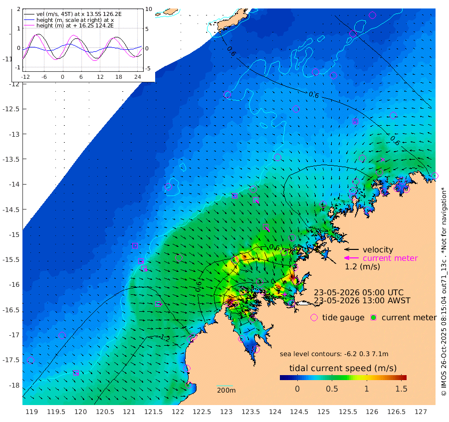 13cm/s 111T +10cm/s rms + 1cm/s 1T. NWSBRW 205m 21cm/s 131T +11cm/s rms + 6cm/s -110T. NWSROW 199m 53cm/s 141T +5cm/s rms + 2cm/s 65T. CAM050 58m 38cm/s 136T +12cm/s rms + 5cm/s 92T. CAM100 99m 8cm/s 112T +7cm/s rms + 1cm/s -85T. KIM400 396m 17cm/s 119T +9cm/s rms + 5cm/s -119T. KIM200 208m 31cm/s 124T +11cm/s rms + 5cm/s -147T. KIM100 99m 36cm/s 99T +8cm/s rms + 3cm/s -103T. KIM050 59m 12cm/s -137T +4cm/s rms + 2cm/s 23T. TIMORS88 91m 7cm Imperieuse Reef 81cm Mermaid Reef 148cm Broome 114cm Cape Baskerville 106cm Red Bluff 126cm Cape Boileau 70cm Scott Reef (WA) 65cm Ashmore Reef 13cm Karrakatta Bay -3cm Sunday Island -219cm Valentine Island -264cm Derby -183cm Port Usborne 40cm Bedford Islands 76cm Yampi Sound (Koolan Island) 51cm Macleay Island 77cm Adele Island 112cm Browse Island 44cm Shale Island 69cm Lizard Island 172cm Hall Point 103cm Degerando Island 129cm White Island 65cm Skua No. 4 Well 71cm Jabiru 120cm Maret Island 123cm Baudin Island 124cm Cape Voltaire (Krait Bay) 41cm Dillon Shoal 59cm Laminaria 133cm Port Warrender 86cm Troughton Island 111cm Cassini Island 99cm West Holothuria Reef Offshore 102cm Jar Island 89cm Lynher Bank 115cm Heywood Shoal 52cm Pee Shoal 72cm Van Cloon Shoal 107cm Carronade Island 111cm Guy Point 120cm Napier Broome Bay 91cm Lesueur Island