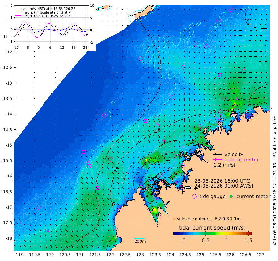 20cm/s 130T +10cm/s rms + 1cm/s 1T. NWSBRW 205m 26cm/s 149T +11cm/s rms + 6cm/s -110T. NWSROW 199m 45cm/s 153T +5cm/s rms + 2cm/s 65T. CAM050 58m 34cm/s 153T +12cm/s rms + 5cm/s 92T. CAM100 99m 6cm/s 149T +7cm/s rms + 1cm/s -85T. KIM400 396m 16cm/s 134T +9cm/s rms + 5cm/s -119T. KIM200 208m 31cm/s 141T +11cm/s rms + 5cm/s -147T. KIM100 99m 30cm/s 136T +8cm/s rms + 3cm/s -103T. KIM050 59m 26cm/s -132T +4cm/s rms + 2cm/s 23T. TIMORS88 91m -89cm Imperieuse Reef -25cm Mermaid Reef -53cm Broome -38cm Cape Baskerville -63cm Red Bluff -50cm Cape Boileau -33cm Scott Reef (WA) -53cm Ashmore Reef -162cm Karrakatta Bay -183cm Sunday Island -276cm Valentine Island -280cm Derby -260cm Port Usborne -145cm Bedford Islands -149cm Yampi Sound (Koolan Island) -175cm Macleay Island -96cm Adele Island 12cm Browse Island -205cm Shale Island -226cm Lizard Island -70cm Hall Point -105cm Degerando Island -77cm White Island -57cm Skua No. 4 Well -60cm Jabiru -57cm Maret Island -44cm Baudin Island -51cm Cape Voltaire (Krait Bay) -66cm Dillon Shoal -36cm Laminaria -64cm Port Warrender -62cm Troughton Island -52cm Cassini Island -46cm West Holothuria Reef Offshore -48cm Jar Island -55cm Lynher Bank -45cm Heywood Shoal -68cm Pee Shoal -55cm Van Cloon Shoal -26cm Carronade Island -26cm Guy Point -36cm Napier Broome Bay -14cm Lesueur Island