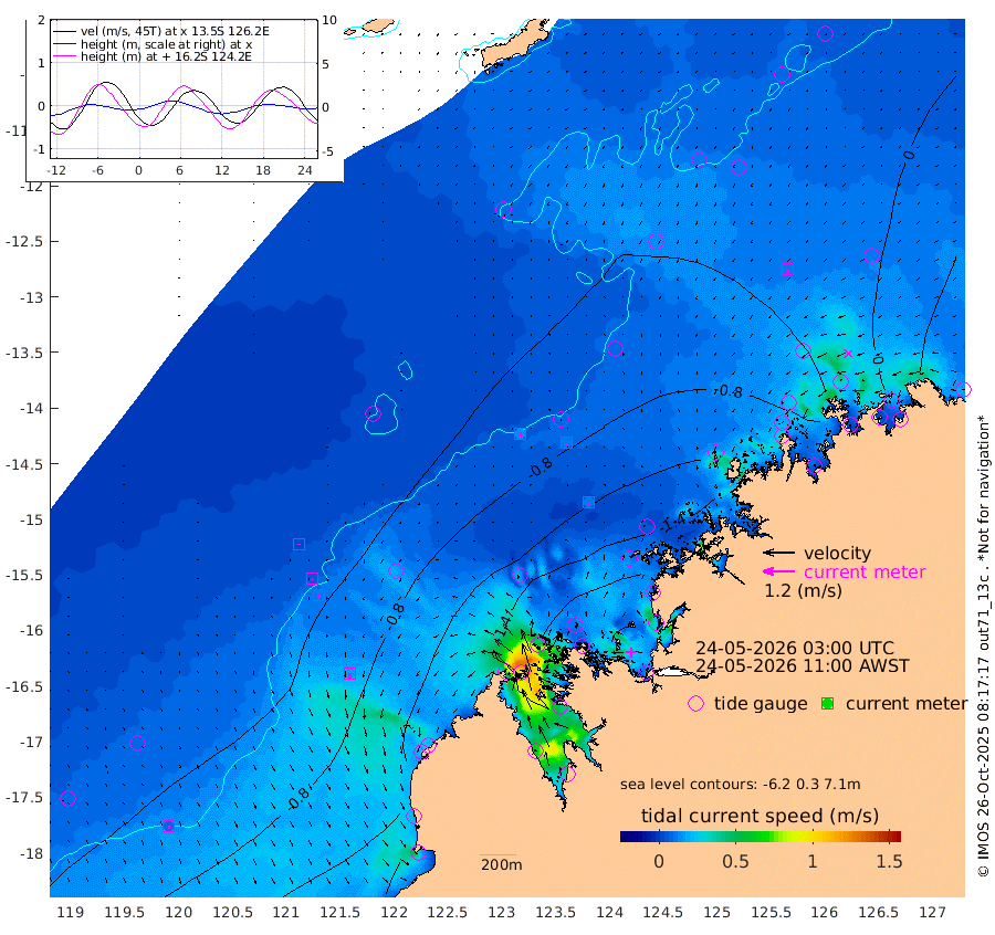 14cm/s 141T +10cm/s rms + 1cm/s 1T. NWSBRW 205m 10cm/s 161T +11cm/s rms + 6cm/s -110T. NWSROW 199m 10cm/s 165T +5cm/s rms + 2cm/s 65T. CAM050 58m 10cm/s 161T +12cm/s rms + 5cm/s 92T. CAM100 99m 3cm/s -157T +7cm/s rms + 1cm/s -85T. KIM400 396m 5cm/s -160T +9cm/s rms + 5cm/s -119T. KIM200 208m 10cm/s -169T +11cm/s rms + 5cm/s -147T. KIM100 99m 16cm/s 179T +8cm/s rms + 3cm/s -103T. KIM050 59m 12cm/s -163T +4cm/s rms + 2cm/s 23T. TIMORS88 91m -50cm Imperieuse Reef -38cm Mermaid Reef -115cm Broome -73cm Cape Baskerville -70cm Red Bluff -68cm Cape Boileau -38cm Scott Reef (WA) -36cm Ashmore Reef -128cm Karrakatta Bay -126cm Sunday Island -109cm Valentine Island -78cm Derby -128cm Port Usborne -143cm Bedford Islands -166cm Yampi Sound (Koolan Island) -199cm Macleay Island -106cm Adele Island -36cm Browse Island -216cm Shale Island -208cm Lizard Island -127cm Hall Point -130cm Degerando Island -119cm White Island -45cm Skua No. 4 Well -29cm Jabiru -82cm Maret Island -66cm Baudin Island -70cm Cape Voltaire (Krait Bay) -30cm Dillon Shoal -18cm Laminaria -74cm Port Warrender -30cm Troughton Island -54cm Cassini Island -33cm West Holothuria Reef Offshore -25cm Jar Island -67cm Lynher Bank -60cm Heywood Shoal -29cm Pee Shoal 5cm Van Cloon Shoal 11cm Carronade Island 5cm Guy Point 18cm Napier Broome Bay 69cm Lesueur Island