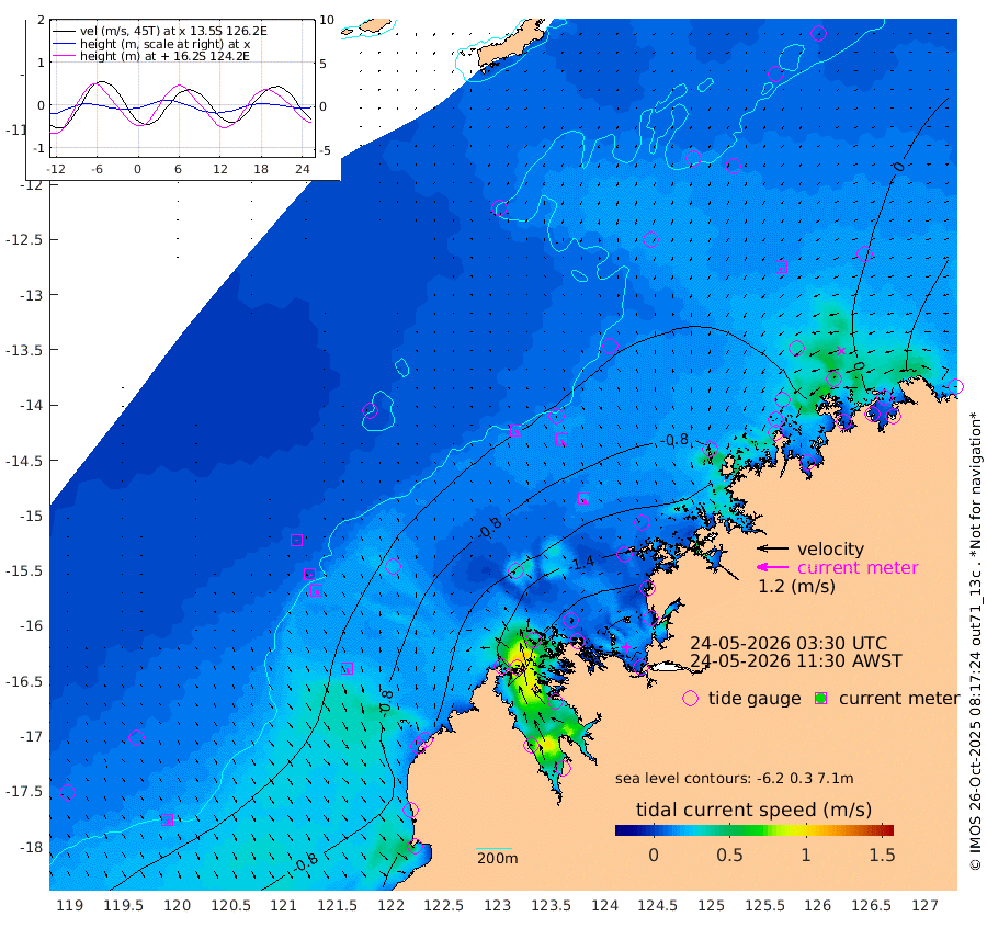15cm/s 135T +10cm/s rms + 1cm/s 1T. NWSBRW 205m 14cm/s 153T +11cm/s rms + 6cm/s -110T. NWSROW 199m 20cm/s 155T +5cm/s rms + 2cm/s 65T. CAM050 58m 17cm/s 152T +12cm/s rms + 5cm/s 92T. CAM100 99m 3cm/s 176T +7cm/s rms + 1cm/s -85T. KIM400 396m 6cm/s 168T +9cm/s rms + 5cm/s -119T. KIM200 208m 14cm/s 167T +11cm/s rms + 5cm/s -147T. KIM100 99m 19cm/s 157T +8cm/s rms + 3cm/s -103T. KIM050 59m 14cm/s -155T +4cm/s rms + 2cm/s 23T. TIMORS88 91m -51cm Imperieuse Reef -26cm Mermaid Reef -87cm Broome -54cm Cape Baskerville -53cm Red Bluff -47cm Cape Boileau -27cm Scott Reef (WA) -29cm Ashmore Reef -126cm Karrakatta Bay -129cm Sunday Island -152cm Valentine Island -131cm Derby -163cm Port Usborne -136cm Bedford Islands -150cm Yampi Sound (Koolan Island) -188cm Macleay Island -94cm Adele Island -17cm Browse Island -203cm Shale Island -192cm Lizard Island -86cm Hall Point -111cm Degerando Island -94cm White Island -37cm Skua No. 4 Well -19cm Jabiru -62cm Maret Island -45cm Baudin Island -50cm Cape Voltaire (Krait Bay) -27cm Dillon Shoal -12cm Laminaria -53cm Port Warrender -20cm Troughton Island -38cm Cassini Island -20cm West Holothuria Reef Offshore -11cm Jar Island -52cm Lynher Bank -42cm Heywood Shoal -25cm Pee Shoal 11cm Van Cloon Shoal 24cm Carronade Island 20cm Guy Point 33cm Napier Broome Bay 76cm Lesueur Island