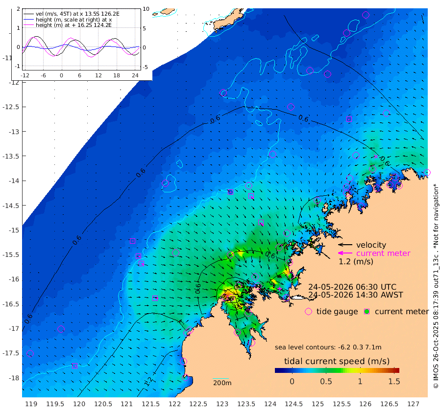 5cm/s 108T +10cm/s rms + 1cm/s 1T. NWSBRW 205m 13cm/s 128T +11cm/s rms + 6cm/s -110T. NWSROW 199m 34cm/s 145T +5cm/s rms + 2cm/s 65T. CAM050 58m 24cm/s 138T +12cm/s rms + 5cm/s 92T. CAM100 99m 6cm/s 107T +7cm/s rms + 1cm/s -85T. KIM400 396m 12cm/s 118T +9cm/s rms + 5cm/s -119T. KIM200 208m 21cm/s 125T +11cm/s rms + 5cm/s -147T. KIM100 99m 25cm/s 94T +8cm/s rms + 3cm/s -103T. KIM050 59m 6cm/s -100T +4cm/s rms + 2cm/s 23T. TIMORS88 91m 10cm Imperieuse Reef 60cm Mermaid Reef 123cm Broome 89cm Cape Baskerville 87cm Red Bluff 102cm Cape Boileau 52cm Scott Reef (WA) 46cm Ashmore Reef 30cm Karrakatta Bay 16cm Sunday Island -148cm Valentine Island -187cm Derby -118cm Port Usborne 42cm Bedford Islands 81cm Yampi Sound (Koolan Island) 60cm Macleay Island 64cm Adele Island 85cm Browse Island 70cm Shale Island 99cm Lizard Island 180cm Hall Point 92cm Degerando Island 115cm White Island 45cm Skua No. 4 Well 58cm Jabiru 92cm Maret Island 97cm Baudin Island 96cm Cape Voltaire (Krait Bay) 28cm Dillon Shoal 37cm Laminaria 106cm Port Warrender 60cm Troughton Island 80cm Cassini Island 73cm West Holothuria Reef Offshore 78cm Jar Island 72cm Lynher Bank 87cm Heywood Shoal 32cm Pee Shoal 49cm Van Cloon Shoal 76cm Carronade Island 79cm Guy Point 88cm Napier Broome Bay 57cm Lesueur Island