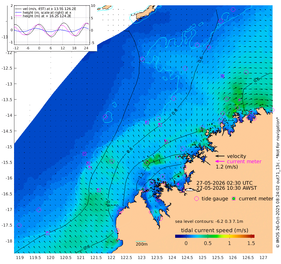 17cm/s -45T +10cm/s rms + 1cm/s 1T. NWSBRW 205m 24cm/s -32T +11cm/s rms + 6cm/s -110T. NWSROW 199m 41cm/s -30T +5cm/s rms + 2cm/s 65T. CAM050 58m 31cm/s -29T +12cm/s rms + 5cm/s 92T. CAM100 99m 7cm/s -45T +7cm/s rms + 1cm/s -85T. KIM400 396m 15cm/s -46T +9cm/s rms + 5cm/s -119T. KIM200 208m 30cm/s -36T +11cm/s rms + 5cm/s -147T. KIM100 99m 30cm/s -50T +8cm/s rms + 3cm/s -103T. KIM050 59m 12cm/s 51T +4cm/s rms + 2cm/s 23T. TIMORS88 91m 79cm Imperieuse Reef 12cm Mermaid Reef 52cm Broome 37cm Cape Baskerville 68cm Red Bluff 43cm Cape Boileau 19cm Scott Reef (WA) 46cm Ashmore Reef 135cm Karrakatta Bay 145cm Sunday Island 236cm Valentine Island 231cm Derby 213cm Port Usborne 138cm Bedford Islands 133cm Yampi Sound (Koolan Island) 146cm Macleay Island 84cm Adele Island -8cm Browse Island 172cm Shale Island 185cm Lizard Island 68cm Hall Point 102cm Degerando Island 65cm White Island 45cm Skua No. 4 Well 47cm Jabiru 65cm Maret Island 42cm Baudin Island 57cm Cape Voltaire (Krait Bay) 45cm Dillon Shoal 8cm Laminaria 75cm Port Warrender 66cm Troughton Island 60cm Cassini Island 40cm West Holothuria Reef Offshore 48cm Jar Island 44cm Lynher Bank 33cm Heywood Shoal 59cm Pee Shoal 49cm Van Cloon Shoal 30cm Carronade Island 23cm Guy Point 33cm Napier Broome Bay 21cm Lesueur Island
