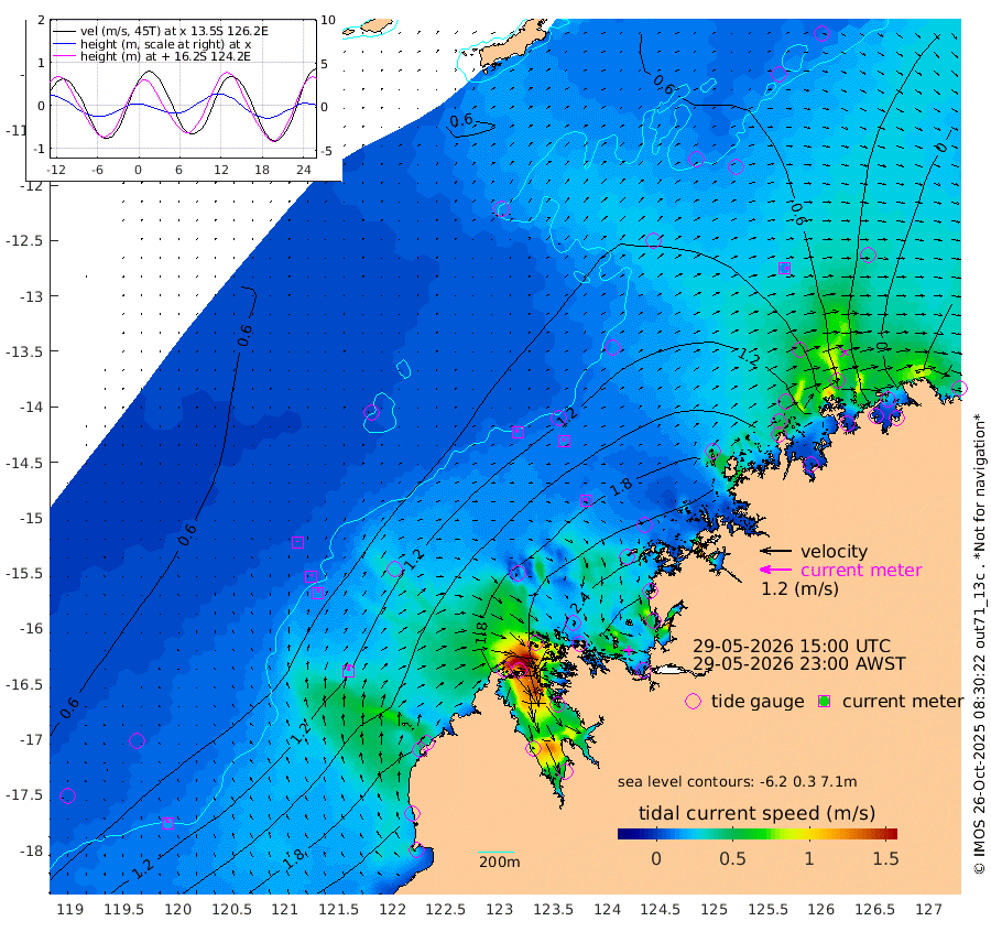 12cm/s -22T +10cm/s rms + 1cm/s 1T. NWSBRW 205m 16cm/s -17T +11cm/s rms + 6cm/s -110T. NWSROW 199m 12cm/s -10T +5cm/s rms + 2cm/s 65T. CAM050 58m 13cm/s -4T +12cm/s rms + 5cm/s 92T. CAM100 99m 4cm/s 21T +7cm/s rms + 1cm/s -85T. KIM400 396m 8cm/s 8T +9cm/s rms + 5cm/s -119T. KIM200 208m 15cm/s 4T +11cm/s rms + 5cm/s -147T. KIM100 99m 27cm/s 5T +8cm/s rms + 3cm/s -103T. KIM050 59m 13cm/s 70T +4cm/s rms + 2cm/s 23T. TIMORS88 91m 75cm Imperieuse Reef 65cm Mermaid Reef 198cm Broome 145cm Cape Baskerville 202cm Red Bluff 138cm Cape Boileau 59cm Scott Reef (WA) 69cm Ashmore Reef 218cm Karrakatta Bay 210cm Sunday Island 147cm Valentine Island 72cm Derby 142cm Port Usborne 248cm Bedford Islands 264cm Yampi Sound (Koolan Island) 295cm Macleay Island 180cm Adele Island 49cm Browse Island 316cm Shale Island 291cm Lizard Island 258cm Hall Point 217cm Degerando Island 191cm White Island 74cm Skua No. 4 Well 60cm Jabiru 150cm Maret Island 130cm Baudin Island 119cm Cape Voltaire (Krait Bay) 48cm Dillon Shoal 33cm Laminaria 140cm Port Warrender 48cm Troughton Island 107cm Cassini Island 66cm West Holothuria Reef Offshore 43cm Jar Island 107cm Lynher Bank 111cm Heywood Shoal 59cm Pee Shoal 11cm Van Cloon Shoal -13cm Carronade Island -8cm Guy Point -16cm Napier Broome Bay -112cm Lesueur Island
