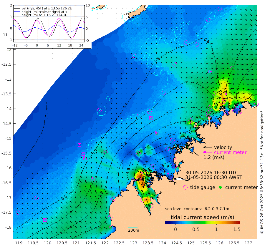 20cm/s -42T +10cm/s rms + 1cm/s 1T. NWSBRW 205m 27cm/s -33T +11cm/s rms + 6cm/s -110T. NWSROW 199m 43cm/s -25T +5cm/s rms + 2cm/s 65T. CAM050 58m 34cm/s -23T +12cm/s rms + 5cm/s 92T. CAM100 99m 7cm/s -25T +7cm/s rms + 1cm/s -85T. KIM400 396m 16cm/s -31T +9cm/s rms + 5cm/s -119T. KIM200 208m 29cm/s -28T +11cm/s rms + 5cm/s -147T. KIM100 99m 36cm/s -30T +8cm/s rms + 3cm/s -103T. KIM050 59m 27cm/s 61T +4cm/s rms + 2cm/s 23T. TIMORS88 91m 86cm Imperieuse Reef 34cm Mermaid Reef 131cm Broome 94cm Cape Baskerville 166cm Red Bluff 85cm Cape Boileau 29cm Scott Reef (WA) 49cm Ashmore Reef 221cm Karrakatta Bay 225cm Sunday Island 253cm Valentine Island 206cm Derby 233cm Port Usborne 232cm Bedford Islands 238cm Yampi Sound (Koolan Island) 245cm Macleay Island 139cm Adele Island -15cm Browse Island 311cm Shale Island 286cm Lizard Island 261cm Hall Point 179cm Degerando Island 142cm White Island 46cm Skua No. 4 Well 53cm Jabiru 100cm Maret Island 85cm Baudin Island 74cm Cape Voltaire (Krait Bay) 39cm Dillon Shoal 16cm Laminaria 98cm Port Warrender 26cm Troughton Island 63cm Cassini Island 34cm West Holothuria Reef Offshore 23cm Jar Island 76cm Lynher Bank 69cm Heywood Shoal 43cm Pee Shoal 3cm Van Cloon Shoal -30cm Carronade Island -27cm Guy Point -36cm Napier Broome Bay -103cm Lesueur Island