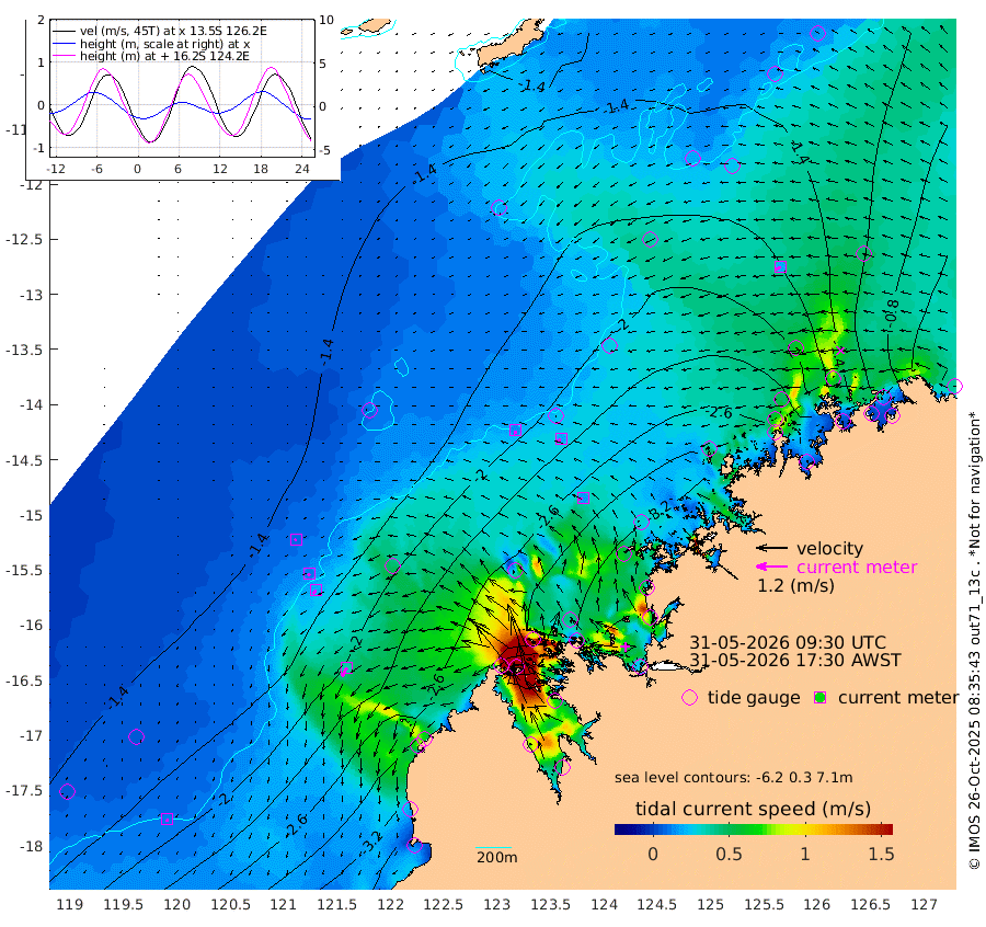 14cm/s 172T +10cm/s rms + 1cm/s 1T. NWSBRW 205m 11cm/s -176T +11cm/s rms + 6cm/s -110T. NWSROW 199m 17cm/s -101T +5cm/s rms + 2cm/s 65T. CAM050 58m 19cm/s -116T +12cm/s rms + 5cm/s 92T. CAM100 99m 7cm/s -128T +7cm/s rms + 1cm/s -85T. KIM400 396m 11cm/s -131T +9cm/s rms + 5cm/s -119T. KIM200 208m 20cm/s -137T +11cm/s rms + 5cm/s -147T. KIM100 99m 37cm/s -150T +8cm/s rms + 3cm/s -103T. KIM050 59m 20cm/s -107T +4cm/s rms + 2cm/s 23T. TIMORS88 91m -130cm Imperieuse Reef -146cm Mermaid Reef -316cm Broome -244cm Cape Baskerville -293cm Red Bluff -232cm Cape Boileau -133cm Scott Reef (WA) -164cm Ashmore Reef -296cm Karrakatta Bay -280cm Sunday Island -138cm Valentine Island -41cm Derby -145cm Port Usborne -329cm Bedford Islands -374cm Yampi Sound (Koolan Island) -402cm Macleay Island -281cm Adele Island -127cm Browse Island -427cm Shale Island -398cm Lizard Island -418cm Hall Point -326cm Degerando Island -313cm White Island -164cm Skua No. 4 Well -152cm Jabiru -271cm Maret Island -256cm Baudin Island -240cm Cape Voltaire (Krait Bay) -133cm Dillon Shoal -120cm Laminaria -272cm Port Warrender -177cm Troughton Island -232cm Cassini Island -184cm West Holothuria Reef Offshore -165cm Jar Island -198cm Lynher Bank -220cm Heywood Shoal -152cm Pee Shoal -113cm Van Cloon Shoal -109cm Carronade Island -116cm Guy Point -107cm Napier Broome Bay -19cm Lesueur Island