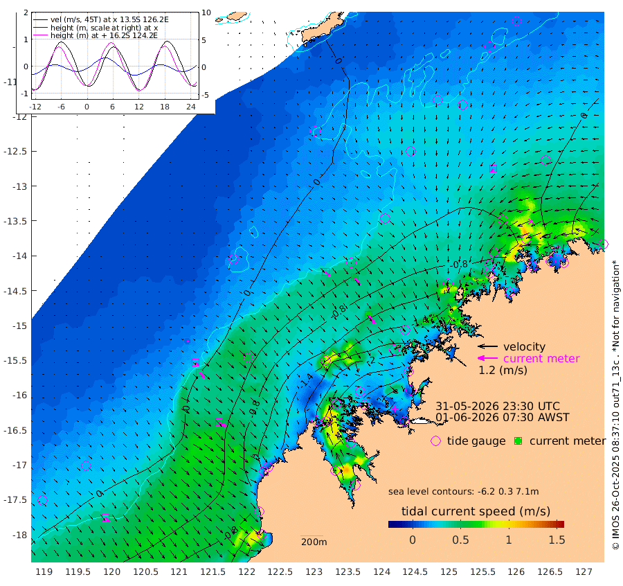 36cm/s 130T +10cm/s rms + 1cm/s 1T. NWSBRW 205m 34cm/s 143T +11cm/s rms + 6cm/s -110T. NWSROW 199m 66cm/s 143T +5cm/s rms + 2cm/s 65T. CAM050 58m 52cm/s 142T +12cm/s rms + 5cm/s 92T. CAM100 99m 10cm/s 132T +7cm/s rms + 1cm/s -85T. KIM400 396m 21cm/s 132T +9cm/s rms + 5cm/s -119T. KIM200 208m 42cm/s 139T +11cm/s rms + 5cm/s -147T. KIM100 99m 49cm/s 125T +8cm/s rms + 3cm/s -103T. KIM050 59m 22cm/s -148T +4cm/s rms + 2cm/s 23T. TIMORS88 91m -64cm Imperieuse Reef 25cm Mermaid Reef -51cm Broome -15cm Cape Baskerville -84cm Red Bluff -24cm Cape Boileau 23cm Scott Reef (WA) 8cm Ashmore Reef -172cm Karrakatta Bay -183cm Sunday Island -276cm Valentine Island -267cm Derby -262cm Port Usborne -160cm Bedford Islands -179cm Yampi Sound (Koolan Island) -180cm Macleay Island -72cm Adele Island 55cm Browse Island -260cm Shale Island -259cm Lizard Island -224cm Hall Point -118cm Degerando Island -80cm White Island 15cm Skua No. 4 Well -11cm Jabiru -26cm Maret Island -8cm Baudin Island -14cm Cape Voltaire (Krait Bay) 4cm Dillon Shoal 57cm Laminaria -41cm Port Warrender 24cm Troughton Island 5cm Cassini Island 22cm West Holothuria Reef Offshore 17cm Jar Island -18cm Lynher Bank 6cm Heywood Shoal 14cm Pee Shoal 33cm Van Cloon Shoal 60cm Carronade Island 66cm Guy Point 62cm Napier Broome Bay 120cm Lesueur Island