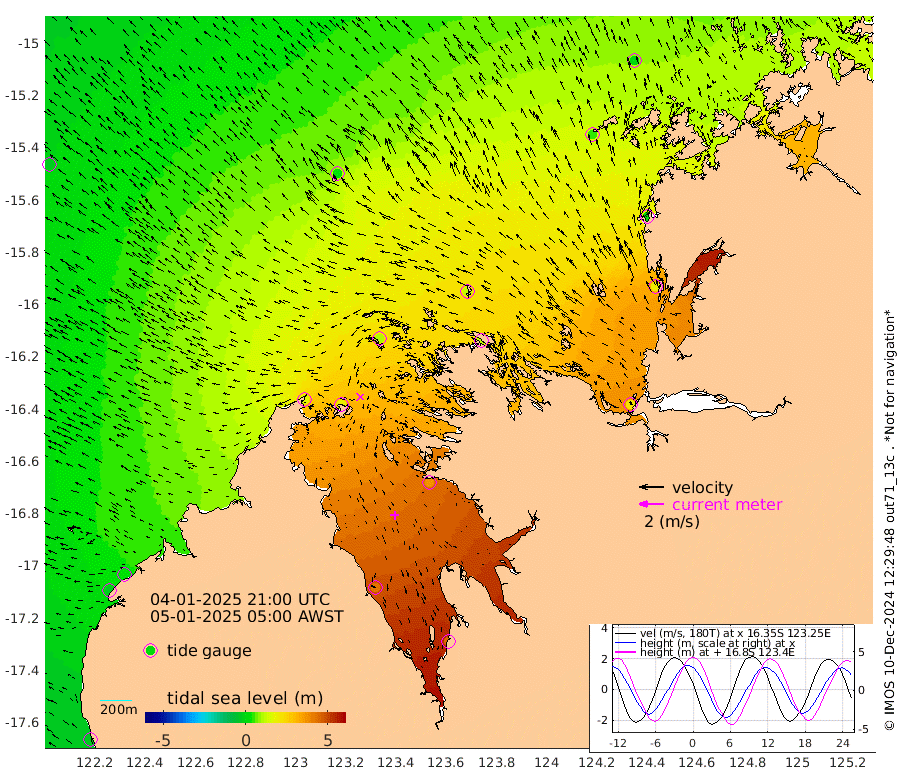 -37cm Cape Baskerville 28cm Red Bluff -25cm Cape Boileau 168cm Karrakatta Bay 182cm Sunday Island 413cm Valentine Island 434cm Derby 360cm Port Usborne 105cm Bedford Islands 122cm Yampi Sound (Koolan Island) 122cm Macleay Island 28cm Adele Island 213cm Shale Island 203cm Lizard Island 34cm Hall Point 49cm Degerando Island 13cm White Island -22cm Lynher Bank