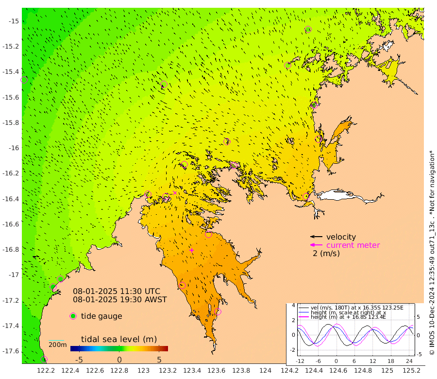 26cm Cape Baskerville 44cm Red Bluff 22cm Cape Boileau 157cm Karrakatta Bay 163cm Sunday Island 310cm Valentine Island 311cm Derby 279cm Port Usborne 135cm Bedford Islands 141cm Yampi Sound (Koolan Island) 173cm Macleay Island 87cm Adele Island 198cm Shale Island 201cm Lizard Island 60cm Hall Point 88cm Degerando Island 64cm White Island 40cm Lynher Bank