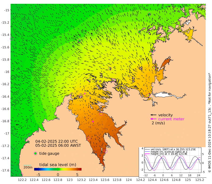 -60cm Cape Baskerville -2cm Red Bluff -53cm Cape Boileau 135cm Karrakatta Bay 160cm Sunday Island 363cm Valentine Island 407cm Derby 332cm Port Usborne 83cm Bedford Islands 83cm Yampi Sound (Koolan Island) 90cm Macleay Island 7cm Adele Island 163cm Shale Island 155cm Lizard Island -5cm Hall Point 11cm Degerando Island -23cm White Island -32cm Lynher Bank