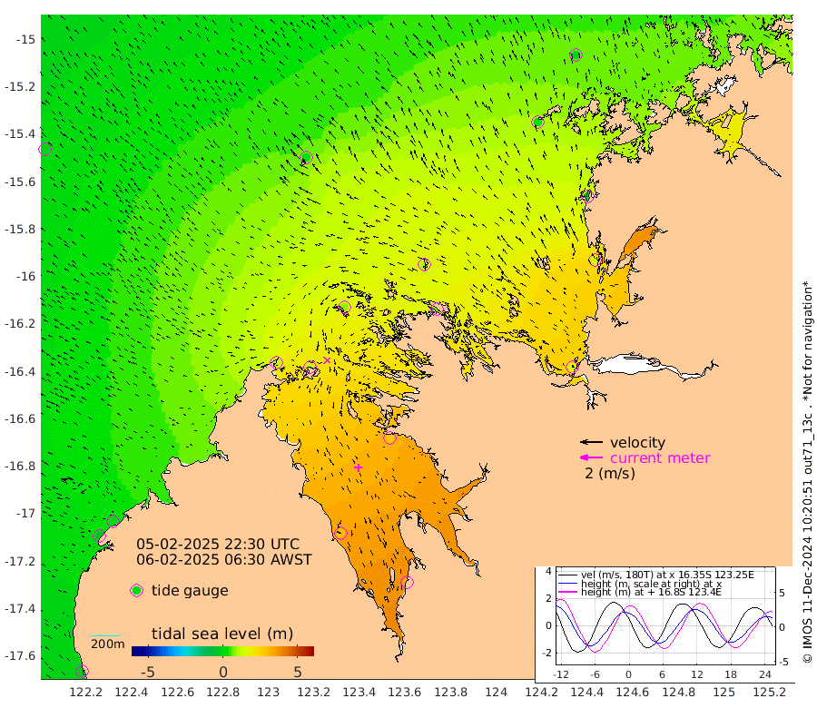 -38cm Cape Baskerville 7cm Red Bluff -34cm Cape Boileau 120cm Karrakatta Bay 139cm Sunday Island 286cm Valentine Island 316cm Derby 268cm Port Usborne 85cm Bedford Islands 81cm Yampi Sound (Koolan Island) 101cm Macleay Island 20cm Adele Island 147cm Shale Island 141cm Lizard Island 10cm Hall Point 20cm Degerando Island -8cm White Island -17cm Lynher Bank