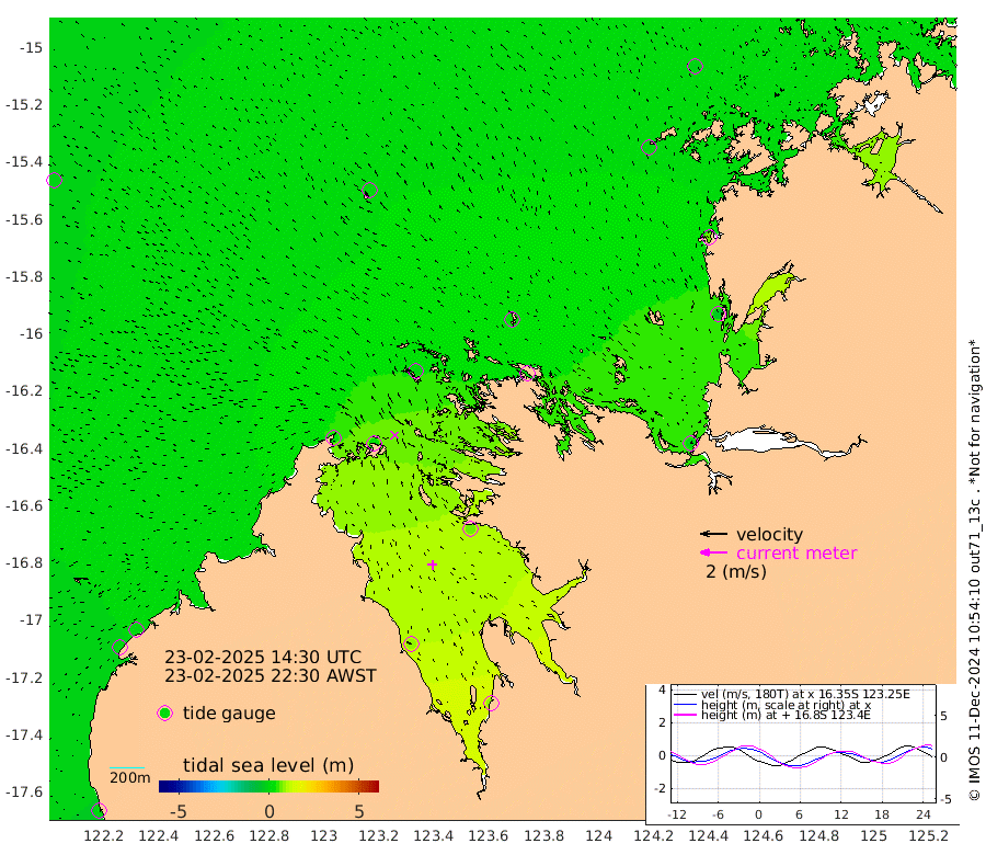 1cm Cape Baskerville 11cm Red Bluff 8cm Cape Boileau 26cm Karrakatta Bay 29cm Sunday Island 87cm Valentine Island 86cm Derby 57cm Port Usborne 11cm Bedford Islands 5cm Yampi Sound (Koolan Island) 36cm Macleay Island 15cm Adele Island 7cm Shale Island -20cm Lizard Island 73cm Hall Point 7cm Degerando Island -2cm White Island -11cm Lynher Bank