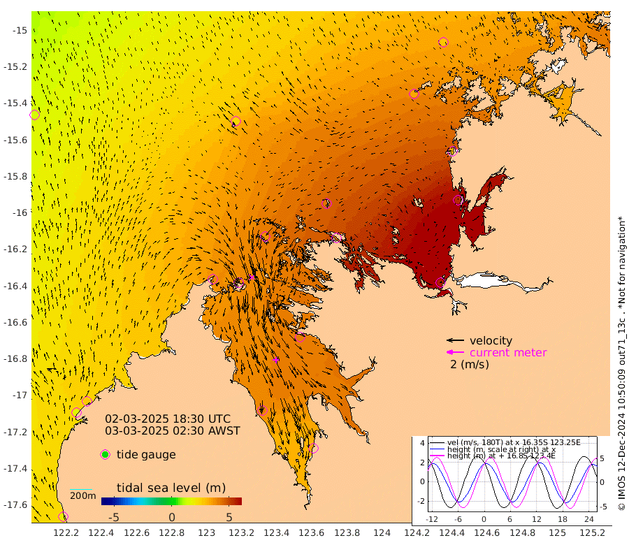 160cm Cape Baskerville 267cm Red Bluff 170cm Cape Boileau 387cm Karrakatta Bay 379cm Sunday Island 407cm Valentine Island 355cm Derby 406cm Port Usborne 370cm Bedford Islands 426cm Yampi Sound (Koolan Island) 422cm Macleay Island 243cm Adele Island 561cm Shale Island 540cm Lizard Island 304cm Hall Point 325cm Degerando Island 268cm White Island 139cm Lynher Bank