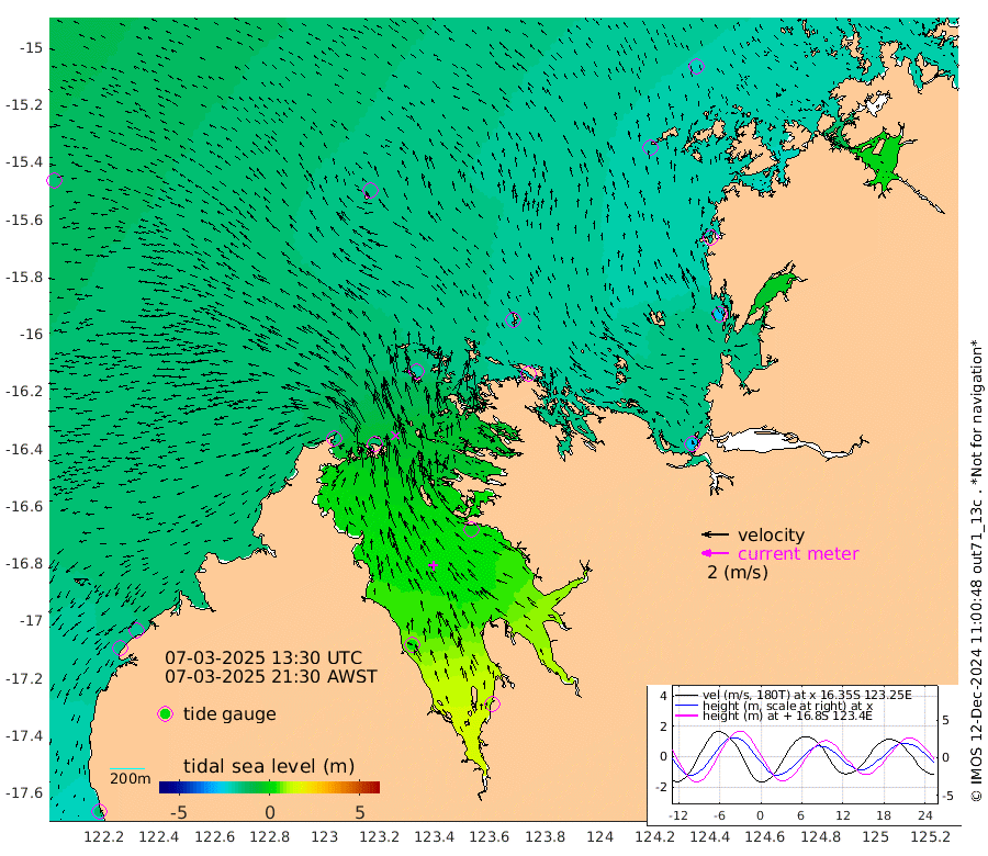 -151cm Cape Baskerville -170cm Red Bluff -145cm Cape Boileau -154cm Karrakatta Bay -150cm Sunday Island 24cm Valentine Island 82cm Derby -18cm Port Usborne -192cm Bedford Islands -234cm Yampi Sound (Koolan Island) -216cm Macleay Island -156cm Adele Island -265cm Shale Island -273cm Lizard Island -189cm Hall Point -203cm Degerando Island -209cm White Island -133cm Lynher Bank