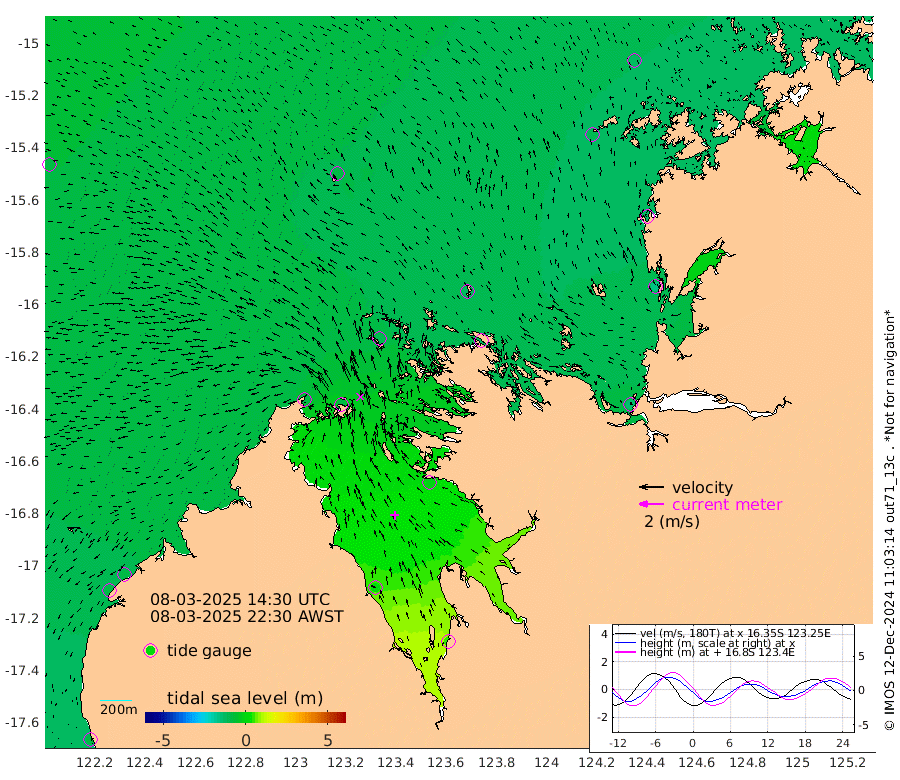 -83cm Cape Baskerville -88cm Red Bluff -75cm Cape Boileau -82cm Karrakatta Bay -87cm Sunday Island 18cm Valentine Island 49cm Derby -9cm Port Usborne -103cm Bedford Islands -131cm Yampi Sound (Koolan Island) -118cm Macleay Island -86cm Adele Island -147cm Shale Island -165cm Lizard Island -124cm Hall Point -106cm Degerando Island -122cm White Island -82cm Lynher Bank