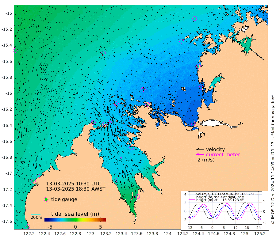 -150cm Cape Baskerville -207cm Red Bluff -147cm Cape Boileau -274cm Karrakatta Bay -271cm Sunday Island -241cm Valentine Island -187cm Derby -253cm Port Usborne -303cm Bedford Islands -328cm Yampi Sound (Koolan Island) -344cm Macleay Island -206cm Adele Island -410cm Shale Island -372cm Lizard Island -225cm Hall Point -271cm Degerando Island -220cm White Island -122cm Lynher Bank