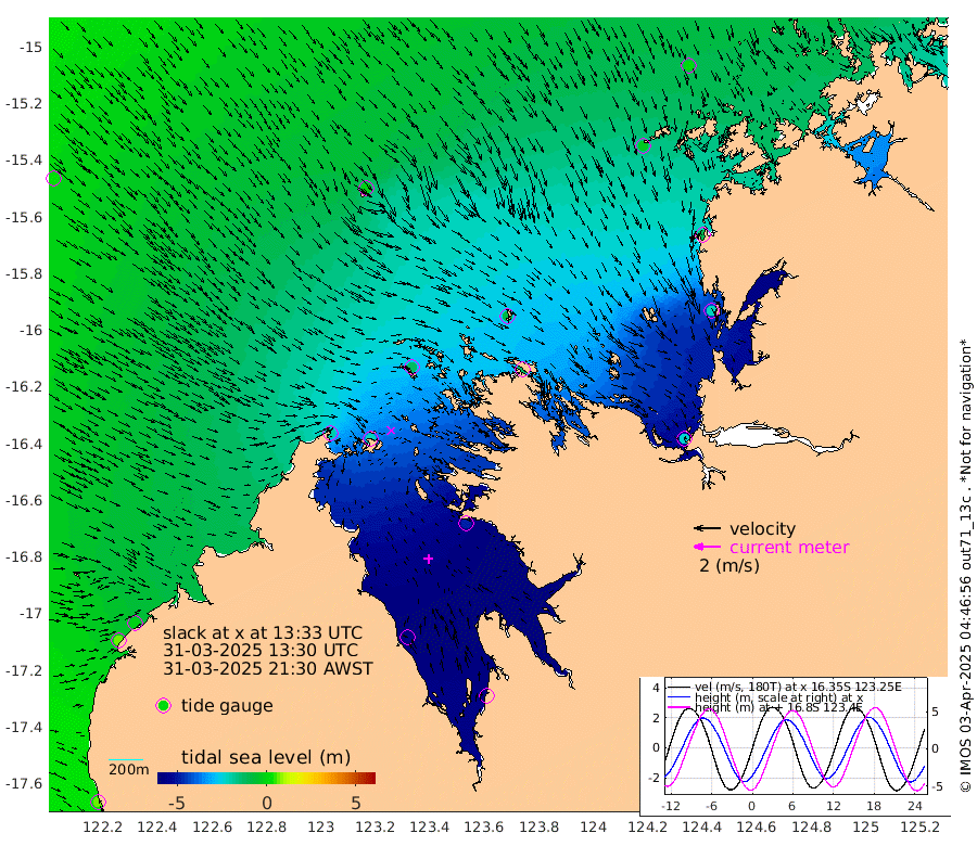 68cm Cape Baskerville -7cm Red Bluff 70cm Cape Boileau -195cm Karrakatta Bay -223cm Sunday Island -548cm Valentine Island -600cm Derby -480cm Port Usborne -121cm Bedford Islands -126cm Yampi Sound (Koolan Island) -93cm Macleay Island -10cm Adele Island -237cm Shale Island -215cm Lizard Island -96cm Hall Point -35cm Degerando Island 13cm White Island 30cm Lynher Bank