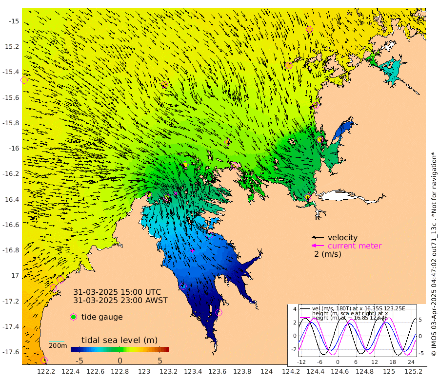 272cm Cape Baskerville 261cm Red Bluff 273cm Cape Boileau 123cm Karrakatta Bay 76cm Sunday Island -344cm Valentine Island -474cm Derby -254cm Port Usborne 219cm Bedford Islands 263cm Yampi Sound (Koolan Island) 306cm Macleay Island 245cm Adele Island 240cm Shale Island 242cm Lizard Island 214cm Hall Point 290cm Degerando Island 299cm White Island 197cm Lynher Bank
