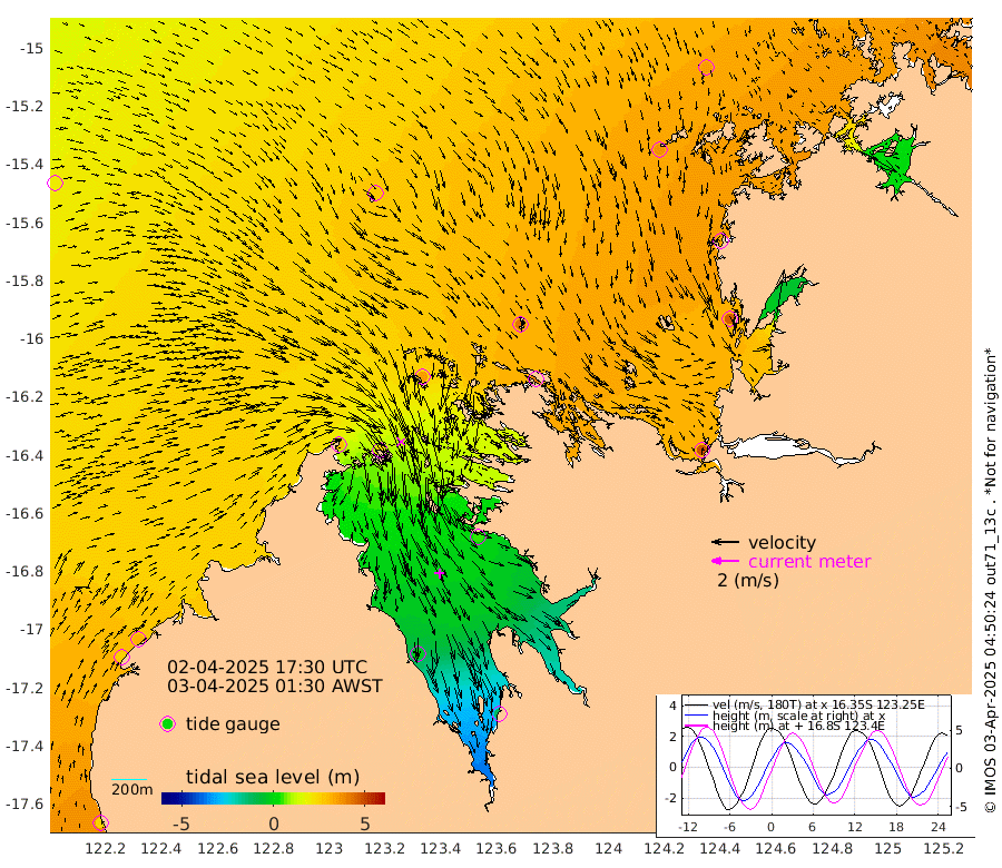 254cm Cape Baskerville 307cm Red Bluff 250cm Cape Boileau 288cm Karrakatta Bay 254cm Sunday Island -6cm Valentine Island -125cm Derby 54cm Port Usborne 348cm Bedford Islands 408cm Yampi Sound (Koolan Island) 416cm Macleay Island 277cm Adele Island 473cm Shale Island 467cm Lizard Island 334cm Hall Point 360cm Degerando Island 342cm White Island 198cm Lynher Bank