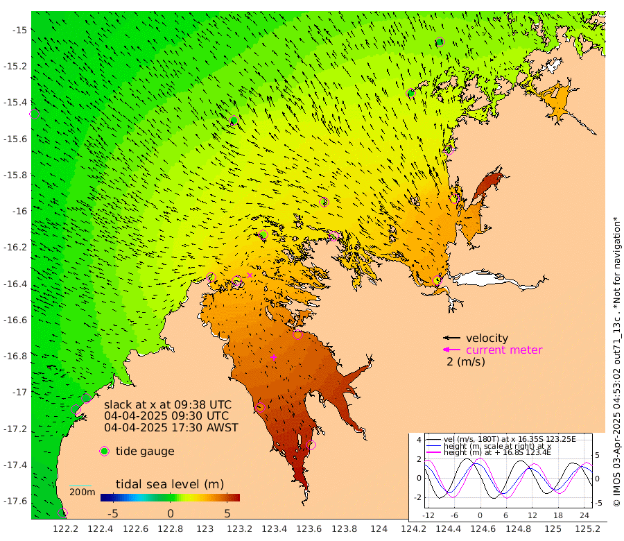 -56cm Cape Baskerville -40cm Red Bluff -43cm Cape Boileau 126cm Karrakatta Bay 151cm Sunday Island 398cm Valentine Island 445cm Derby 360cm Port Usborne 74cm Bedford Islands 76cm Yampi Sound (Koolan Island) 92cm Macleay Island 12cm Adele Island 152cm Shale Island 169cm Lizard Island 60cm Hall Point 18cm Degerando Island -14cm White Island -16cm Lynher Bank