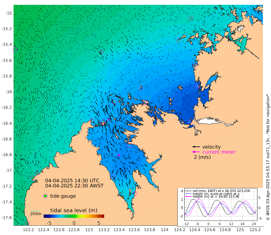 -88cm Cape Baskerville -125cm Red Bluff -90cm Cape Boileau -239cm Karrakatta Bay -259cm Sunday Island -312cm Valentine Island -306cm Derby -313cm Port Usborne -228cm Bedford Islands -253cm Yampi Sound (Koolan Island) -258cm Macleay Island -150cm Adele Island -336cm Shale Island -346cm Lizard Island -232cm Hall Point -184cm Degerando Island -158cm White Island -105cm Lynher Bank