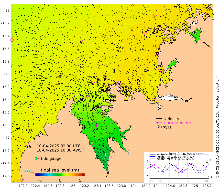 184cm Cape Baskerville 197cm Red Bluff 176cm Cape Boileau 188cm Karrakatta Bay 178cm Sunday Island 57cm Valentine Island -25cm Derby 74cm Port Usborne 245cm Bedford Islands 265cm Yampi Sound (Koolan Island) 321cm Macleay Island 220cm Adele Island 290cm Shale Island 291cm Lizard Island 221cm Hall Point 246cm Degerando Island 226cm White Island 150cm Lynher Bank