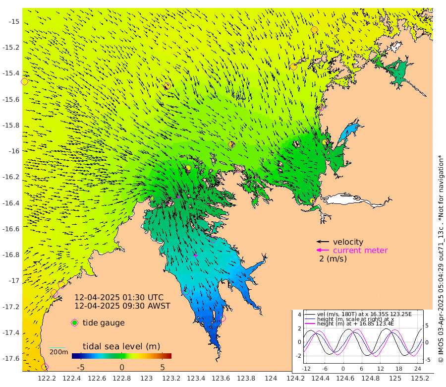216cm Cape Baskerville 188cm Red Bluff 205cm Cape Boileau 96cm Karrakatta Bay 64cm Sunday Island -211cm Valentine Island -303cm Derby -157cm Port Usborne 160cm Bedford Islands 205cm Yampi Sound (Koolan Island) 266cm Macleay Island 213cm Adele Island 180cm Shale Island 170cm Lizard Island 234cm Hall Point 222cm Degerando Island 242cm White Island 164cm Lynher Bank