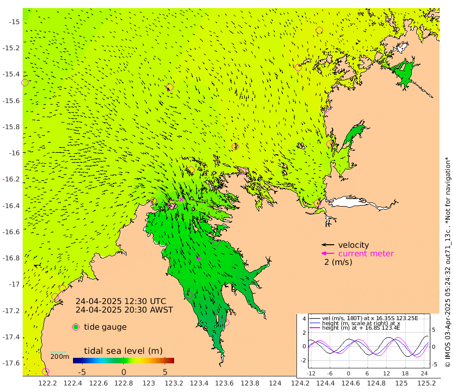 144cm Cape Baskerville 149cm Red Bluff 148cm Cape Boileau 139cm Karrakatta Bay 112cm Sunday Island 6cm Valentine Island -58cm Derby 23cm Port Usborne 157cm Bedford Islands 184cm Yampi Sound (Koolan Island) 248cm Macleay Island 166cm Adele Island 203cm Shale Island 199cm Lizard Island 144cm Hall Point 174cm Degerando Island 163cm White Island 104cm Lynher Bank