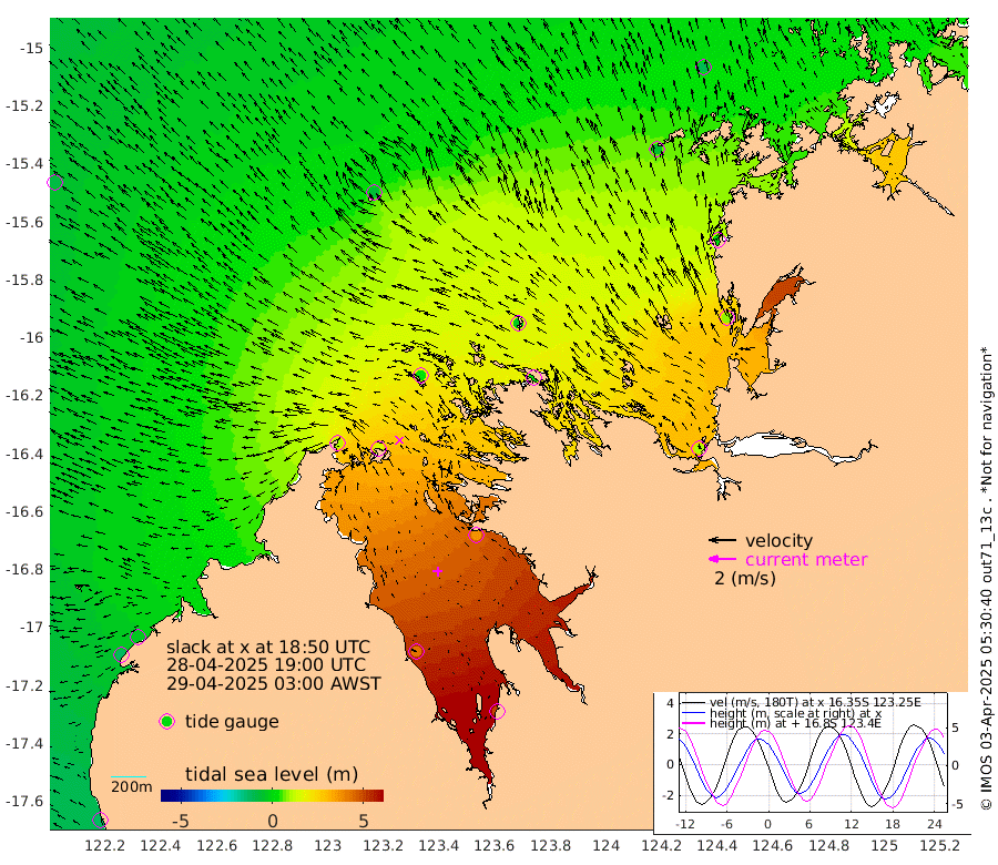 -121cm Cape Baskerville -36cm Red Bluff -119cm Cape Boileau 108cm Karrakatta Bay 142cm Sunday Island 424cm Valentine Island 500cm Derby 373cm Port Usborne 33cm Bedford Islands 20cm Yampi Sound (Koolan Island) -20cm Macleay Island -60cm Adele Island 109cm Shale Island 76cm Lizard Island 28cm Hall Point -52cm Degerando Island -94cm White Island -79cm Lynher Bank
