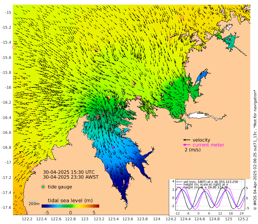 245cm Cape Baskerville 252cm Red Bluff 234cm Cape Boileau 138cm Karrakatta Bay 92cm Sunday Island -268cm Valentine Island -399cm Derby -196cm Port Usborne 227cm Bedford Islands 271cm Yampi Sound (Koolan Island) 299cm Macleay Island 223cm Adele Island 267cm Shale Island 261cm Lizard Island 243cm Hall Point 275cm Degerando Island 285cm White Island 173cm Lynher Bank