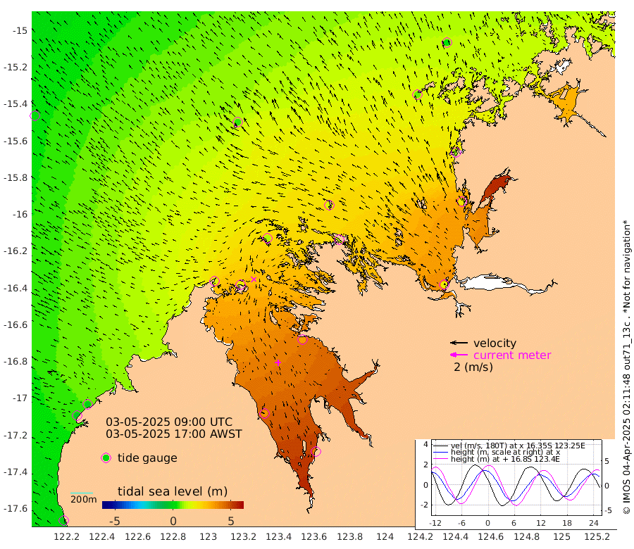 -23cm Cape Baskerville -5cm Red Bluff -6cm Cape Boileau 148cm Karrakatta Bay 172cm Sunday Island 365cm Valentine Island 400cm Derby 339cm Port Usborne 106cm Bedford Islands 114cm Yampi Sound (Koolan Island) 131cm Macleay Island 41cm Adele Island 191cm Shale Island 204cm Lizard Island 90cm Hall Point 59cm Degerando Island 25cm White Island 7cm Lynher Bank