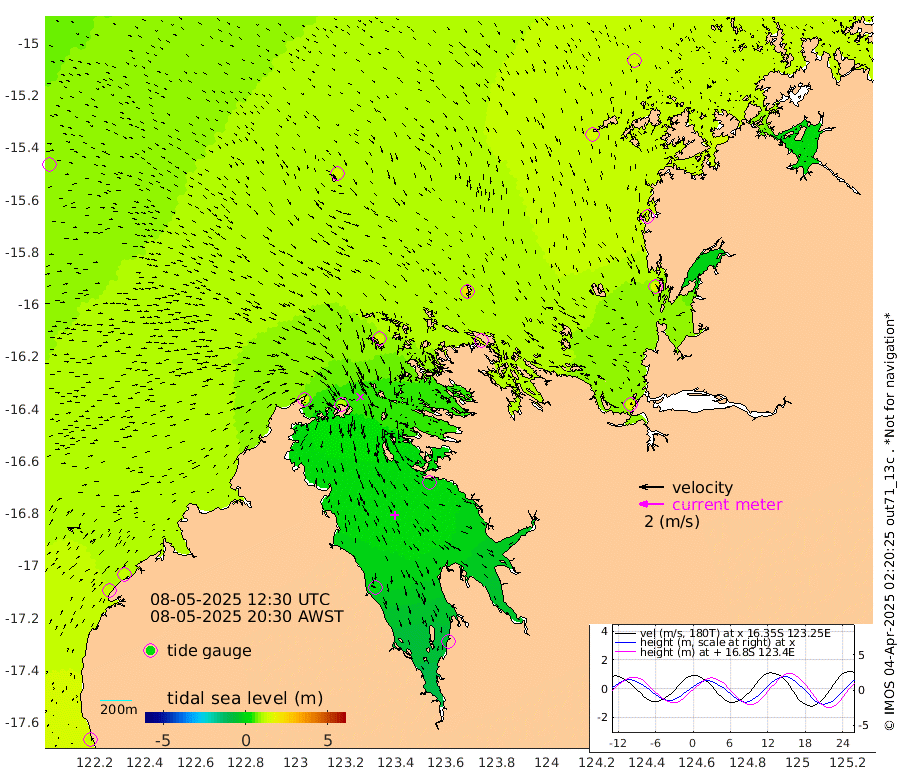 123cm Cape Baskerville 129cm Red Bluff 126cm Cape Boileau 114cm Karrakatta Bay 107cm Sunday Island 7cm Valentine Island -55cm Derby 12cm Port Usborne 142cm Bedford Islands 158cm Yampi Sound (Koolan Island) 214cm Macleay Island 139cm Adele Island 166cm Shale Island 155cm Lizard Island 116cm Hall Point 146cm Degerando Island 145cm White Island 88cm Lynher Bank
