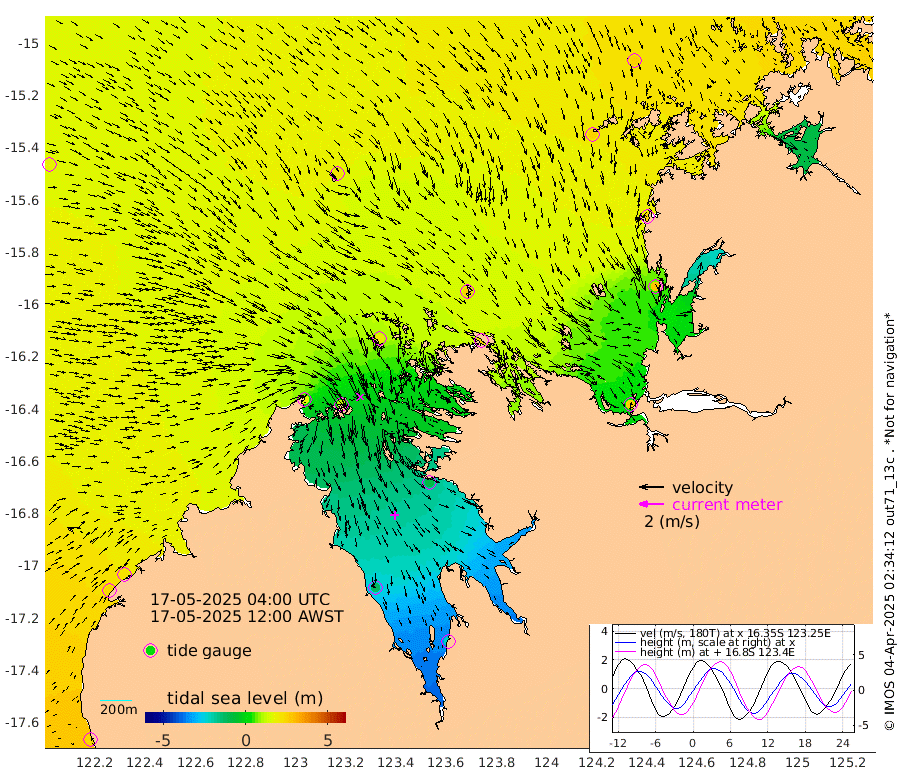 229cm Cape Baskerville 223cm Red Bluff 232cm Cape Boileau 160cm Karrakatta Bay 114cm Sunday Island -122cm Valentine Island -221cm Derby -87cm Port Usborne 203cm Bedford Islands 250cm Yampi Sound (Koolan Island) 250cm Macleay Island 209cm Adele Island 250cm Shale Island 268cm Lizard Island 246cm Hall Point 257cm Degerando Island 259cm White Island 178cm Lynher Bank
