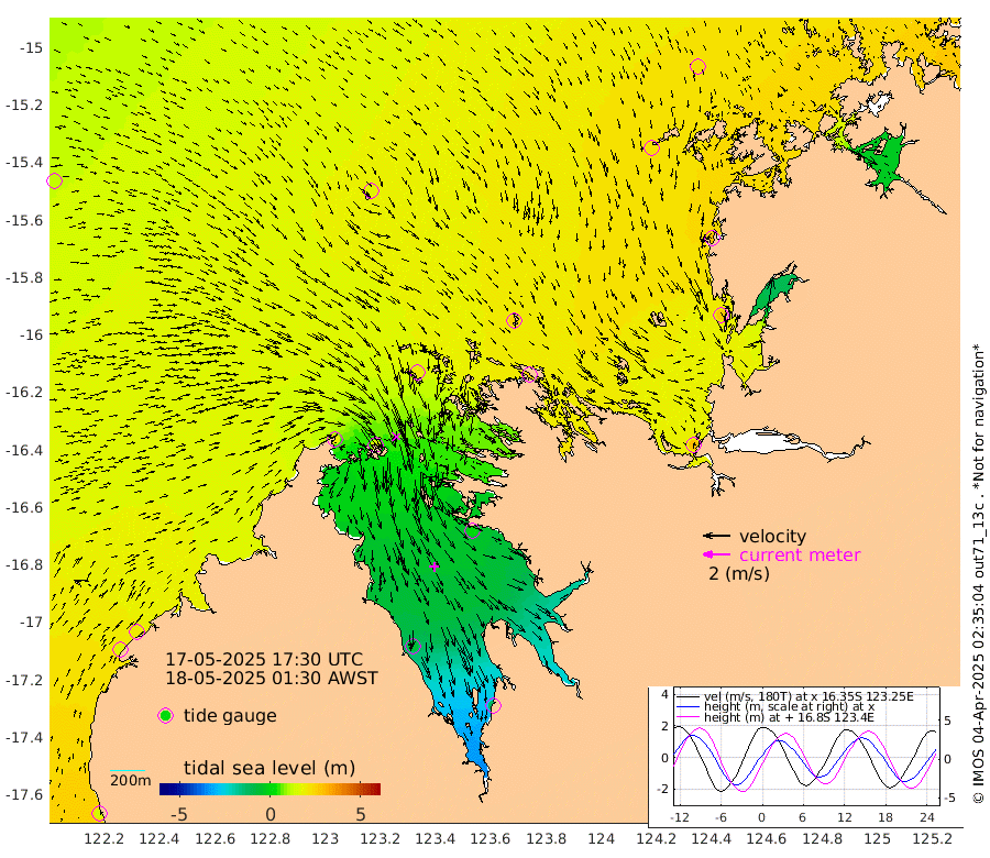156cm Cape Baskerville 190cm Red Bluff 141cm Cape Boileau 174cm Karrakatta Bay 135cm Sunday Island -59cm Valentine Island -125cm Derby 4cm Port Usborne 205cm Bedford Islands 250cm Yampi Sound (Koolan Island) 255cm Macleay Island 168cm Adele Island 299cm Shale Island 272cm Lizard Island 286cm Hall Point 220cm Degerando Island 208cm White Island 116cm Lynher Bank