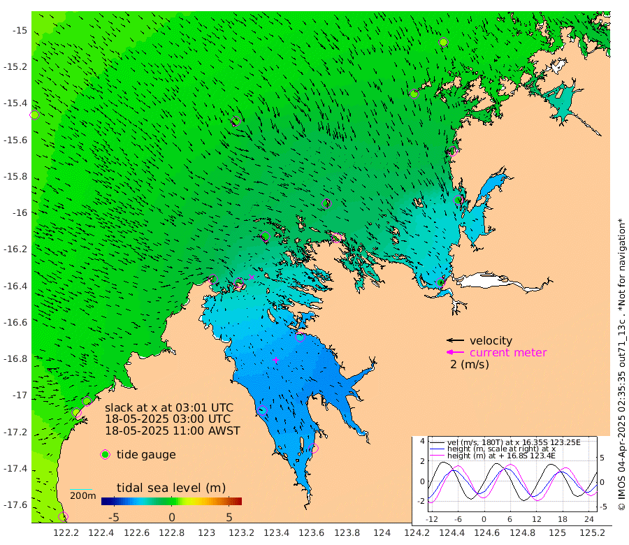 101cm Cape Baskerville 60cm Red Bluff 107cm Cape Boileau -47cm Karrakatta Bay -62cm Sunday Island -257cm Valentine Island -300cm Derby -227cm Port Usborne 7cm Bedford Islands 9cm Yampi Sound (Koolan Island) -6cm Macleay Island 52cm Adele Island -54cm Shale Island -15cm Lizard Island -32cm Hall Point 59cm Degerando Island 76cm White Island 81cm Lynher Bank
