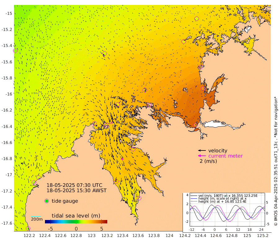 98cm Cape Baskerville 144cm Red Bluff 107cm Cape Boileau 240cm Karrakatta Bay 222cm Sunday Island 289cm Valentine Island 250cm Derby 267cm Port Usborne 200cm Bedford Islands 250cm Yampi Sound (Koolan Island) 257cm Macleay Island 145cm Adele Island 338cm Shale Island 342cm Lizard Island 305cm Hall Point 190cm Degerando Island 167cm White Island 84cm Lynher Bank