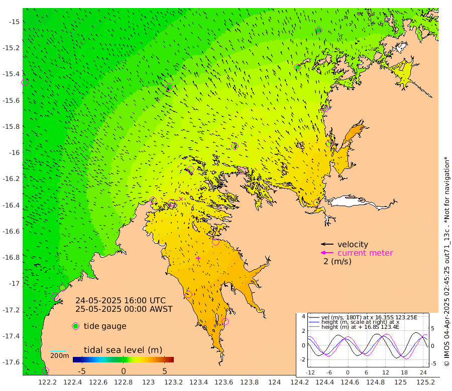 -12cm Cape Baskerville 65cm Red Bluff -13cm Cape Boileau 130cm Karrakatta Bay 138cm Sunday Island 267cm Valentine Island 282cm Derby 232cm Port Usborne 95cm Bedford Islands 95cm Yampi Sound (Koolan Island) 82cm Macleay Island 29cm Adele Island 155cm Shale Island 110cm Lizard Island 117cm Hall Point 46cm Degerando Island 9cm White Island -14cm Lynher Bank