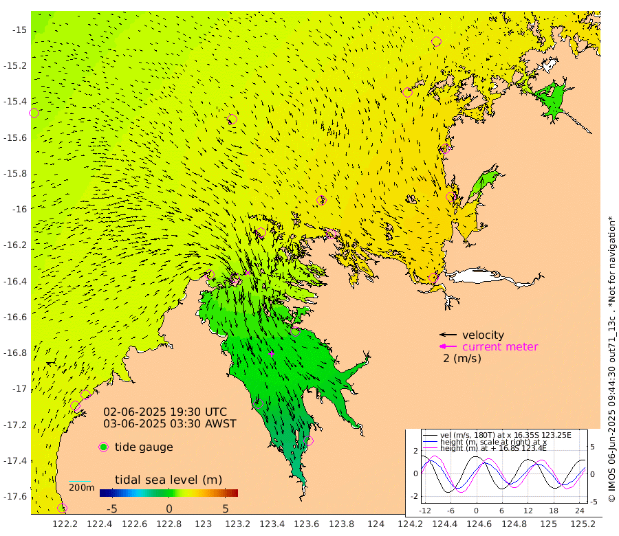 122cm Cape Baskerville 132cm Red Bluff 105cm Cape Boileau 139cm Karrakatta Bay 127cm Sunday Island 27cm Valentine Island -33cm Derby 56cm Port Usborne 170cm Bedford Islands 208cm Yampi Sound (Koolan Island) 222cm Macleay Island 144cm Adele Island 251cm Shale Island 254cm Lizard Island 252cm Hall Point 177cm Degerando Island 178cm White Island 107cm Lynher Bank