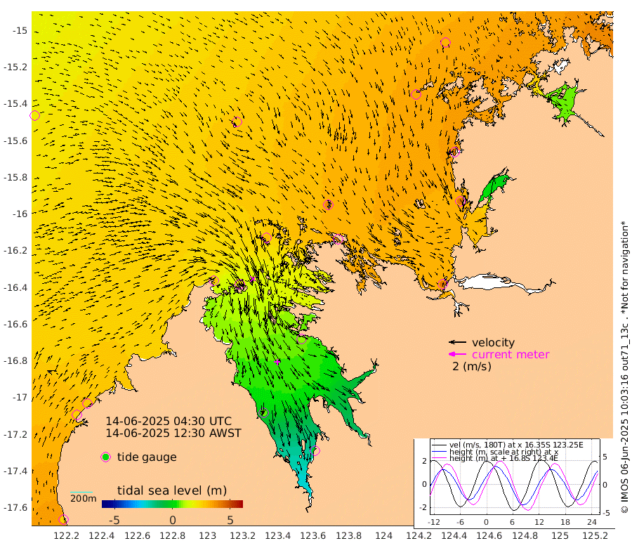 249cm Cape Baskerville 281cm Red Bluff 255cm Cape Boileau 282cm Karrakatta Bay 233cm Sunday Island 75cm Valentine Island -31cm Derby 92cm Port Usborne 294cm Bedford Islands 361cm Yampi Sound (Koolan Island) 382cm Macleay Island 270cm Adele Island 415cm Shale Island 417cm Lizard Island 429cm Hall Point 330cm Degerando Island 316cm White Island 193cm Lynher Bank