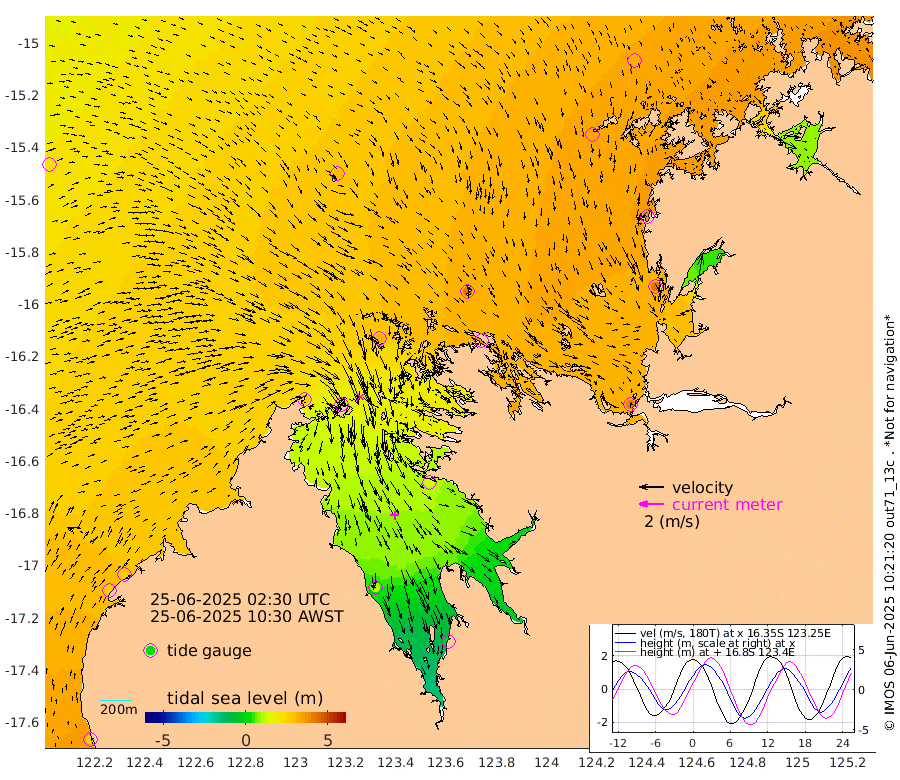 250cm Cape Baskerville 253cm Red Bluff 258cm Cape Boileau 277cm Karrakatta Bay 253cm Sunday Island 106cm Valentine Island 17cm Derby 133cm Port Usborne 316cm Bedford Islands 367cm Yampi Sound (Koolan Island) 417cm Macleay Island 289cm Adele Island 409cm Shale Island 422cm Lizard Island 356cm Hall Point 337cm Degerando Island 318cm White Island 212cm Lynher Bank