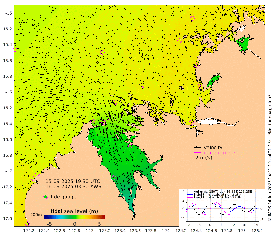 146cm Cape Baskerville 144cm Red Bluff 153cm Cape Boileau 150cm Karrakatta Bay 149cm Sunday Island 19cm Valentine Island -26cm Derby 51cm Port Usborne 175cm Bedford Islands 227cm Yampi Sound (Koolan Island) 204cm Macleay Island 153cm Adele Island 252cm Shale Island 283cm Lizard Island 196cm Hall Point 202cm Degerando Island 210cm White Island 140cm Lynher Bank