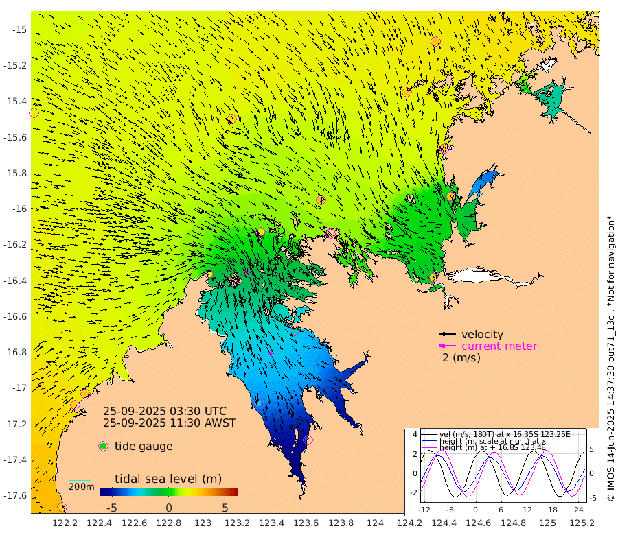 246cm Cape Baskerville 267cm Red Bluff 241cm Cape Boileau 139cm Karrakatta Bay 81cm Sunday Island -244cm Valentine Island -382cm Derby -195cm Port Usborne 201cm Bedford Islands 259cm Yampi Sound (Koolan Island) 289cm Macleay Island 225cm Adele Island 255cm Shale Island 251cm Lizard Island 271cm Hall Point 268cm Degerando Island 281cm White Island 166cm Lynher Bank