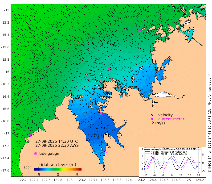 81cm Cape Baskerville 23cm Red Bluff 71cm Cape Boileau -105cm Karrakatta Bay -135cm Sunday Island -340cm Valentine Island -383cm Derby -311cm Port Usborne -55cm Bedford Islands -73cm Yampi Sound (Koolan Island) -66cm Macleay Island 14cm Adele Island -151cm Shale Island -168cm Lizard Island -90cm Hall Point -1cm Degerando Island 18cm White Island 42cm Lynher Bank