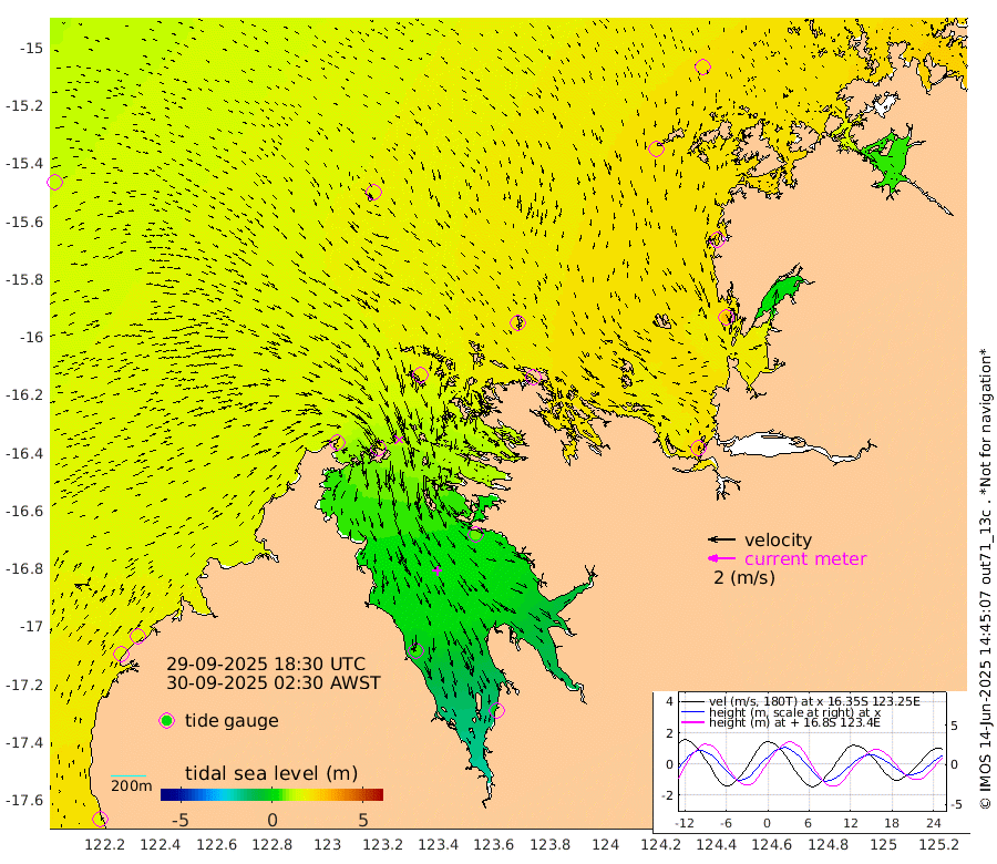 161cm Cape Baskerville 184cm Red Bluff 160cm Cape Boileau 192cm Karrakatta Bay 161cm Sunday Island 55cm Valentine Island -10cm Derby 70cm Port Usborne 198cm Bedford Islands 249cm Yampi Sound (Koolan Island) 223cm Macleay Island 164cm Adele Island 293cm Shale Island 296cm Lizard Island 235cm Hall Point 219cm Degerando Island 214cm White Island 131cm Lynher Bank